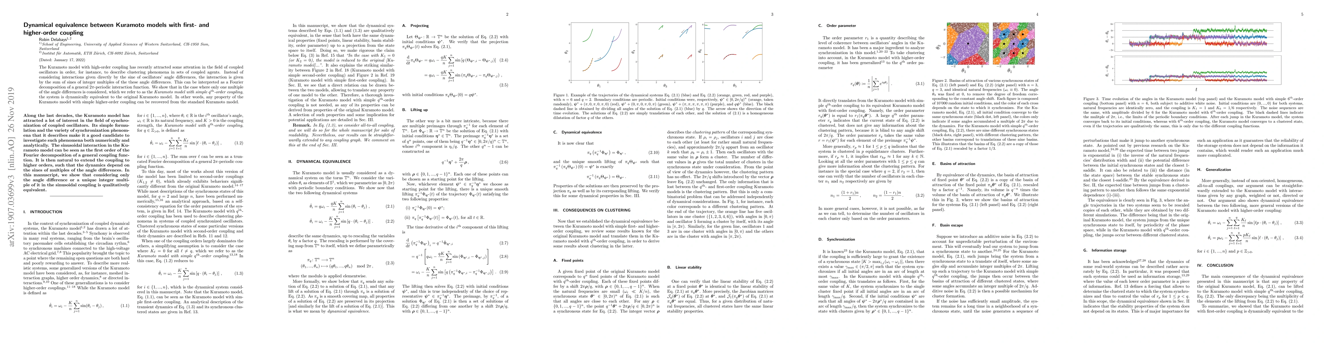 The Kuramoto model with high-order coupling has recently attracted some attention in the field of coupled oscillators in order, for instance, to describe clustering phenomena in sets of coupled agents. Instead of considering interactions given directly by the sine of oscillators' angle differences, the interaction is given by the sum of sines of integer multiples of these angle differences. This can be interpreted as a Fourier decomposition of a general $2{\pi}$-periodic interaction function. We show that in the case where only one multiple of the angle differences is considered, which we refer to as the "Kuramoto model with simple $q$th-order coupling," the system is dynamically equivalent to the original Kuramoto model. In other words, any property of the Kuramoto model with simple higher-order coupling can be recovered from the standard Kuramoto model.