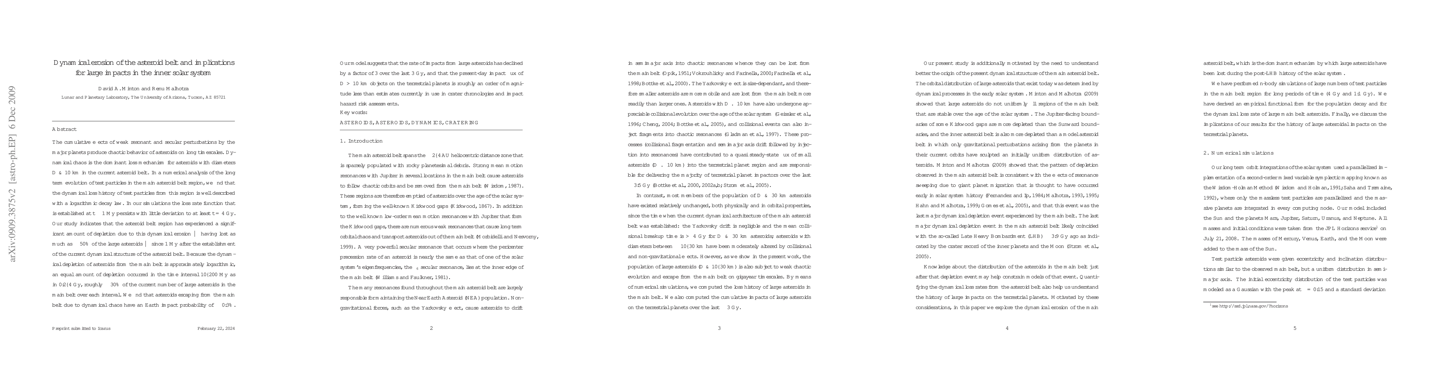This study reveals that dynamical erosion due to resonant and secular perturbations has significantly depleted the asteroid belt, losing up to 50% of large asteroids since 1 million years ago. The findings suggest a decline in the rate of large asteroid impacts on Earth by a factor of three over the last 3 billion years, indicating a much lower current impact flux than previously estimated.