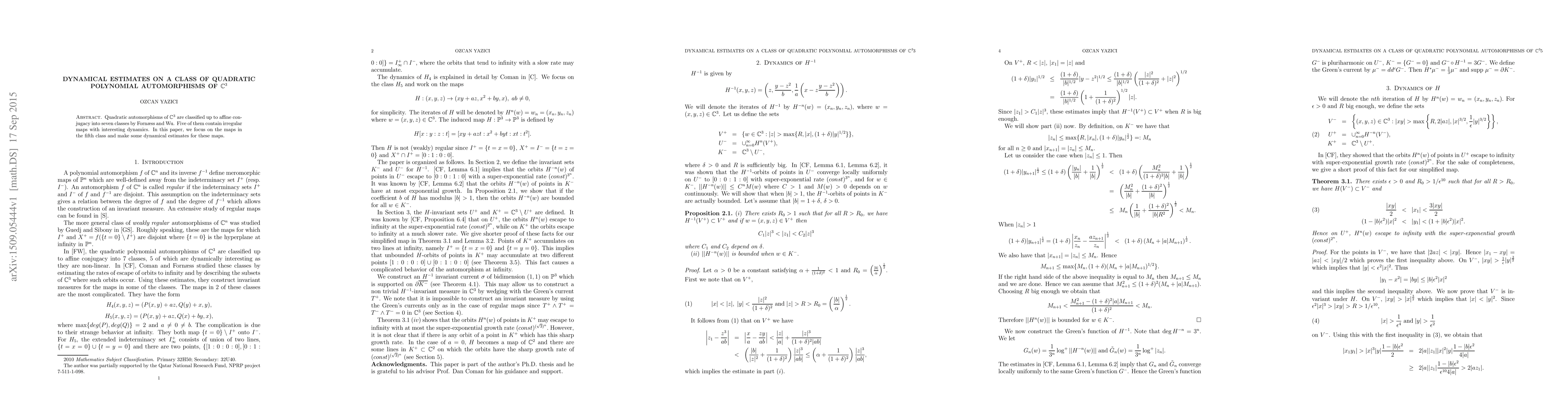 Quadratic automorphisms of $\mathbb C^3$ are classified up to affine conjugacy into seven classes by Forn$\ae$ss and Wu. Five of them contain irregular maps with interesting dynamics. In this paper, we focus on the maps in the fifth class and make some dynamical estimates for these maps.