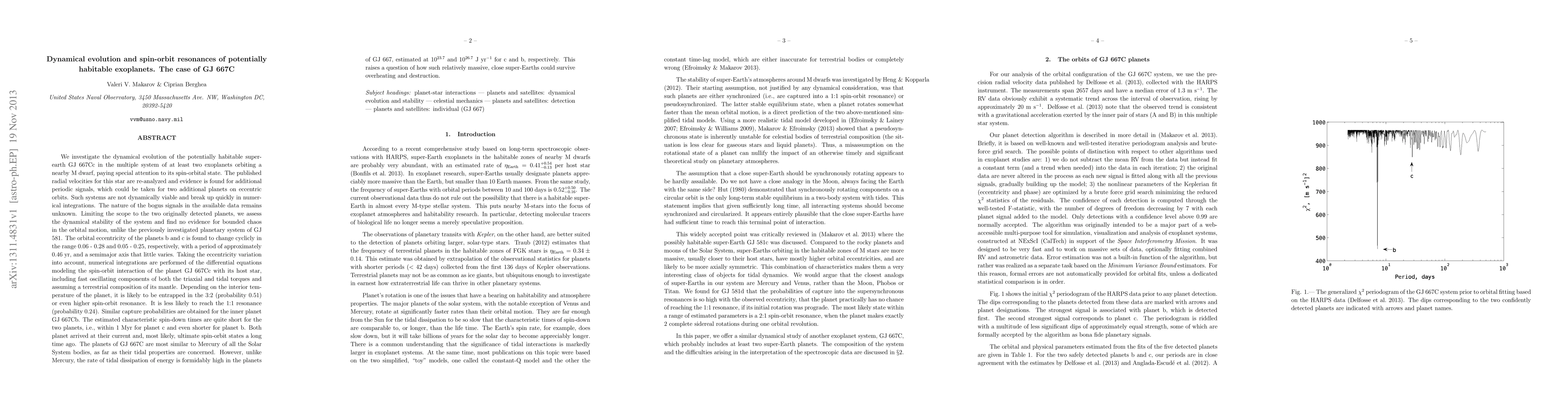 We investigate the dynamical evolution of the potentially habitable super-earth GJ 667Cc in the multiple system of at least two exoplanets orbiting a nearby M dwarf, paying special attention to its spin-orbital state. The published radial velocities for this star are re-analyzed and evidence is found for additional periodic signals, which could be taken for two additional planets on eccentric orbits. Such systems are not dynamically viable and break up quickly in numerical integrations. Limiting the scope to the two originally detected planets, we assess the dynamical stability of the system and find no evidence for bounded chaos in the orbital motion. The orbital eccentricity of the planets b and c is found to change cyclicly in the range 0.06 - 0.28 and 0.05 - 0.25, respectively, with a period of approximately 0.46 yr. Taking the eccentricity variation into account, numerical integrations are performed of the differential equations modeling the spin-orbit interaction of the planet GJ 667Cc with its host star assuming a terrestrial composition of its mantle. Depending on the interior temperature of the planet, it is likely to be entrapped in the 3:2 (probability 0.51) or even higher spin-orbit resonance. It is less likely to reach the 1:1 resonance (probability 0.24). The estimated characteristic spin-down times are quite short for the two planets, i.e., within 1 Myr for planet c and even shorter for planet b. Both planet arrived at their current and, most likely, ultimate spin-orbit states a long time ago. The rate of tidal dissipation of energy is formidably high in the planets of GJ 667, estimated at $10^{23.7}$ and $10^{26.7}$ J yr$^{-1}$ for c and b, respectively. This raises a question of how such relatively massive, close super-Earths could survive overheating and destruction.