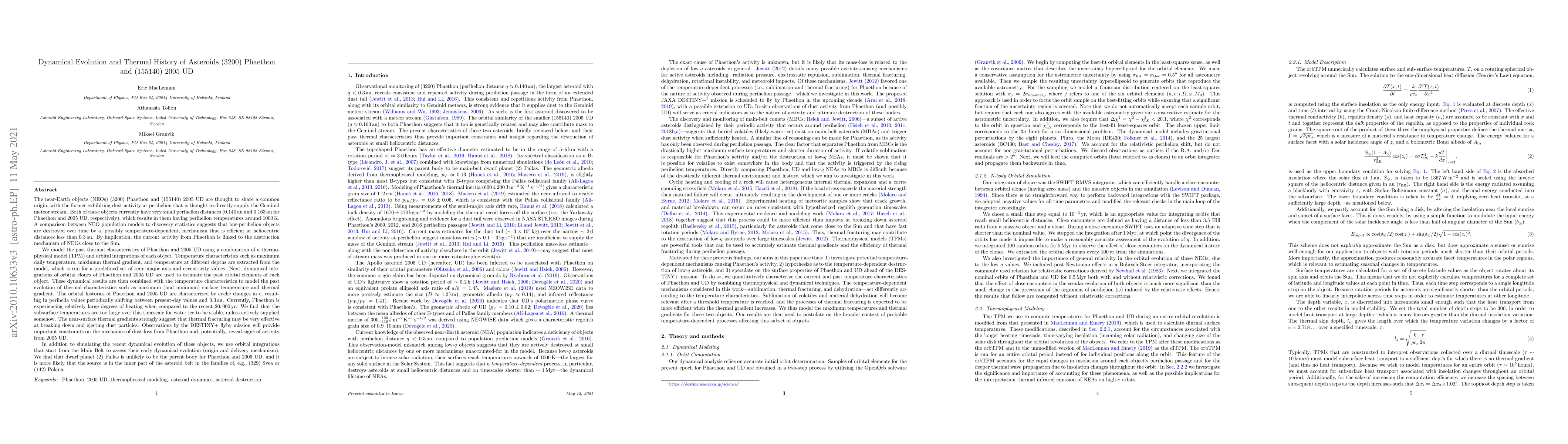 This study models the thermal history of asteroids Phaethon and 2005 UD to understand their origins and evolution, finding they likely originated from the inner asteroid belt rather than dwarf planet Pallas.