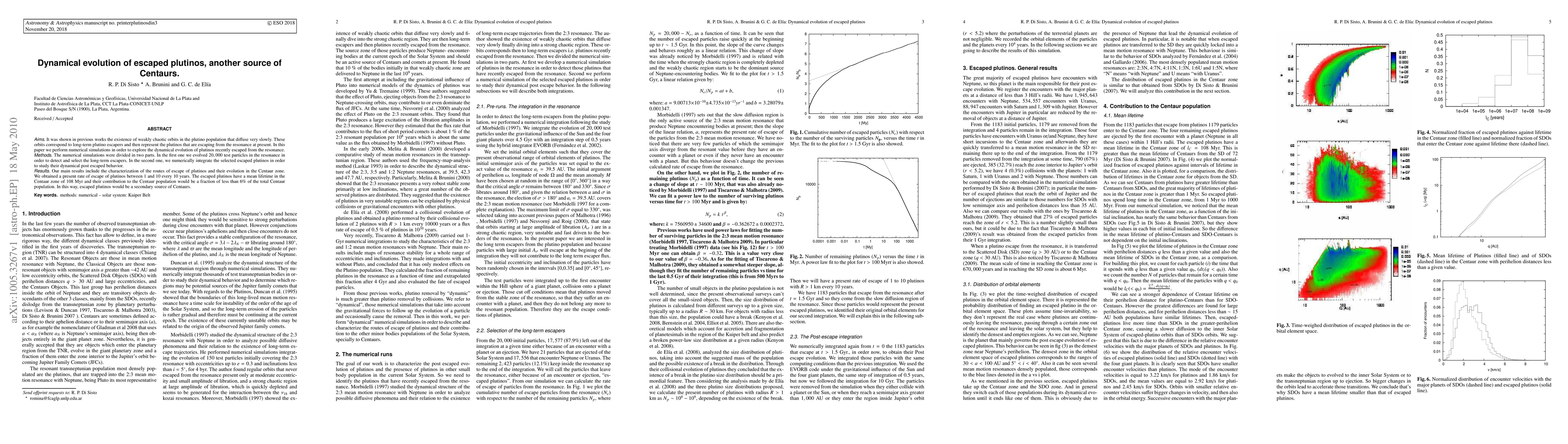 This research simulates the escape of plutinos from their resonance, revealing a slow diffusion process with 1-10 escapers per 10 years. Escaped plutinos live on average 100 million years in the Centaur zone, contributing less than 6% to the Centaur population, thus acting as a secondary source of Centaurs.