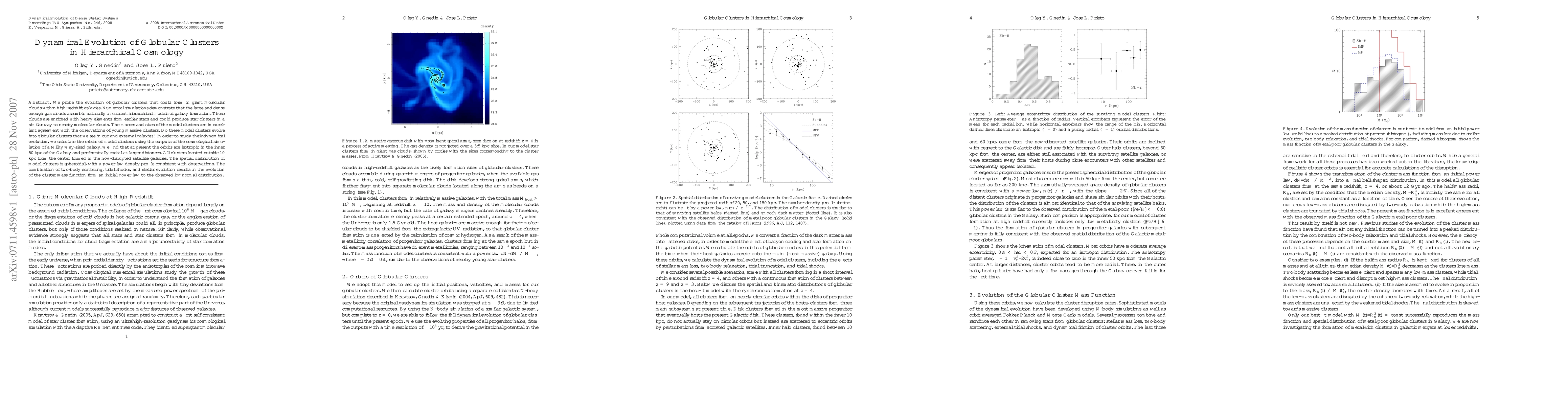 We probe the evolution of globular clusters that could form in giant molecular clouds within high-redshift galaxies. Numerical simulations demonstrate that the large and dense enough gas clouds assemble naturally in current hierarchical models of galaxy formation. These clouds are enriched with heavy elements from earlier stars and could produce star clusters in a similar way to nearby molecular clouds. The masses and sizes of the model clusters are in excellent agreement with the observations of young massive clusters. Do these model clusters evolve into globular clusters that we see in our and external galaxies? In order to study their dynamical evolution, we calculate the orbits of model clusters using the outputs of the cosmological simulation of a Milky Way-sized galaxy. We find that at present the orbits are isotropic in the inner 50 kpc of the Galaxy and preferentially radial at larger distances. All clusters located outside 10 kpc from the center formed in the now-disrupted satellite galaxies. The spatial distribution of model clusters is spheroidal, with a power-law density profile consistent with observations. The combination of two-body scattering, tidal shocks, and stellar evolution results in the evolution of the cluster mass function from an initial power law to the observed log-normal distribution.