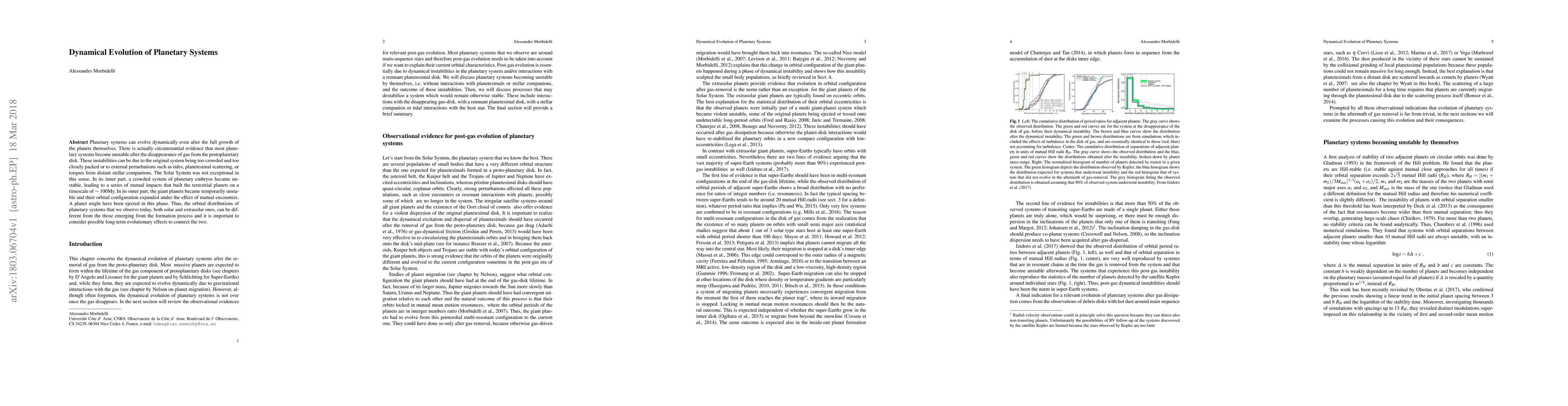 This paper explores the dynamical evolution of planetary systems post-formation, highlighting evidence of instabilities driven by crowded initial conditions and external perturbations. It discusses the Solar System's evolution, including the formation of terrestrial planets and the temporary instability of the giant planets, emphasizing the importance of considering long-term evolutionary effects to understand current planetary configurations.