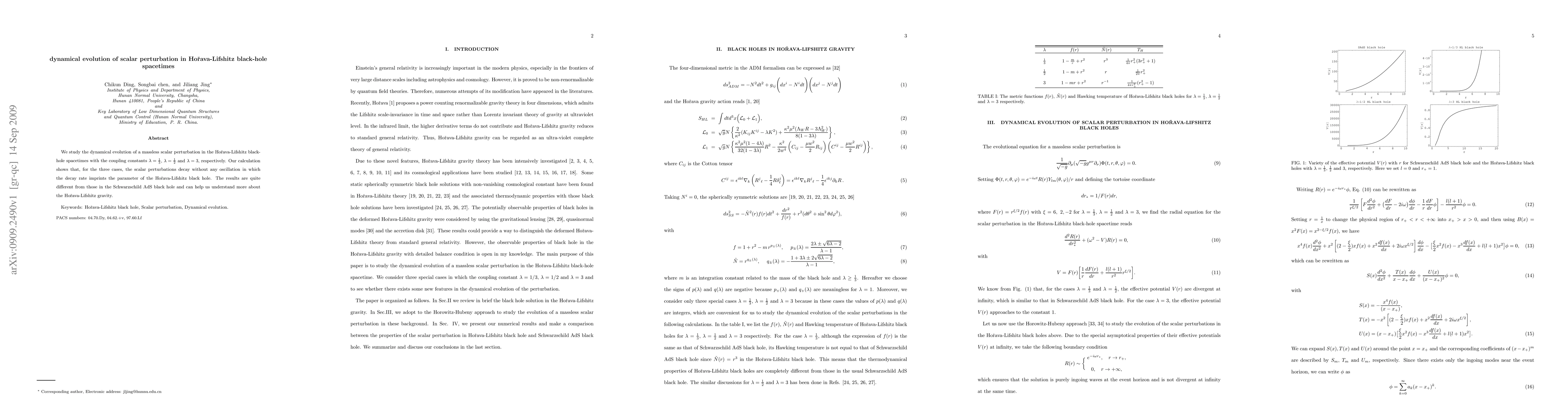 This paper investigates the decay of massless scalar perturbations in Hořava-Lifshitz black-hole spacetimes with different coupling constants. The study finds that the perturbations decay without oscillation, with the decay rate dependent on the Hořava-Lifshitz parameters, contrasting with results from Schwarzschild AdS black holes.