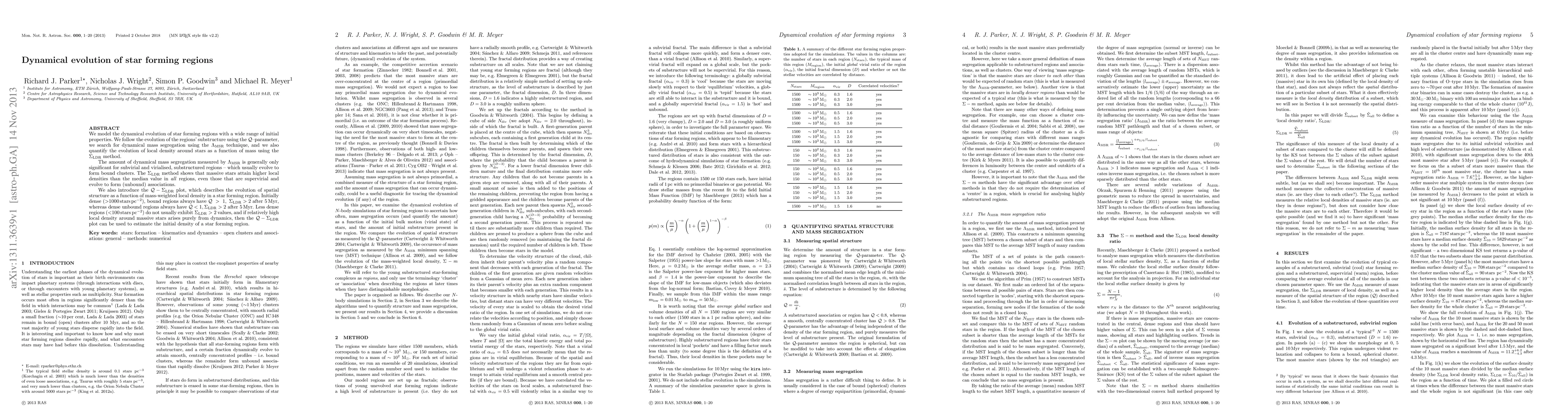 This paper models the dynamical evolution of star forming regions, finding significant mass segregation in substructured, subvirial regions that evolve into bound clusters. The Sigma_LDR method reveals that massive stars consistently achieve higher local densities, regardless of the region's final bound or unbound state.