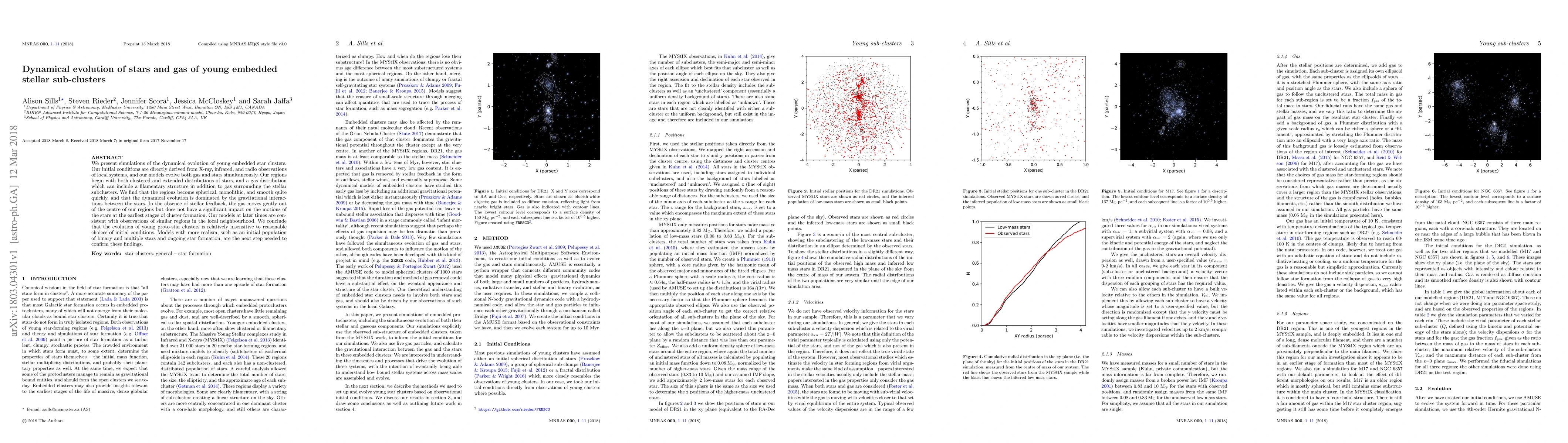 We present simulations of the dynamical evolution of young embedded star clusters. Our initial conditions are directly derived from X-ray, infrared, and radio observations of local systems, and our models evolve both gas and stars simultaneously. Our regions begin with both clustered and extended distributions of stars, and a gas distribution which can include a filamentary structure in addition to gas surrounding the stellar subclusters. We find that the regions become spherical, monolithic, and smooth quite quickly, and that the dynamical evolution is dominated by the gravitational interactions between the stars. In the absence of stellar feedback, the gas moves gently out of the centre of our regions but does not have a significant impact on the motions of the stars at the earliest stages of cluster formation. Our models at later times are consistent with observations of similar regions in the local neighbourhood. We conclude that the evolution of young proto-star clusters is relatively insensitive to reasonable choices of initial conditions. Models with more realism, such as an initial population of binary and multiple stars and ongoing star formation, are the next step needed to confirm these findings.