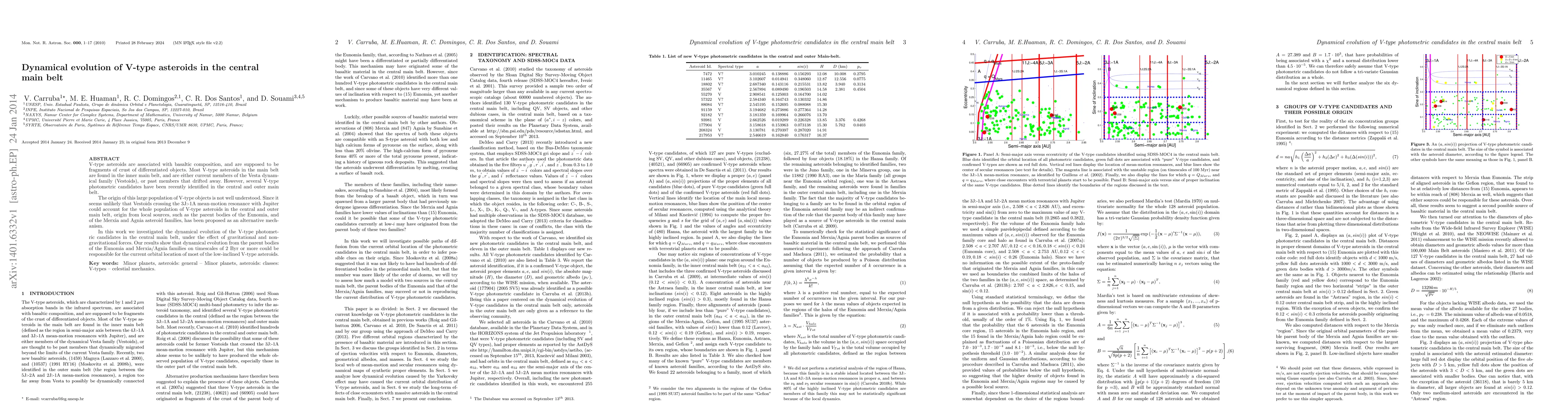 This paper investigates the dynamical evolution of V-type asteroids in the central main belt, proposing that their current locations are likely due to the breakup of parent bodies from the Eunomia and Merxia/Agnia asteroid families over timescales of 2 billion years or more. The study considers both gravitational and non-gravitational forces to explain the presence of V-types outside the typical Vestoids region.