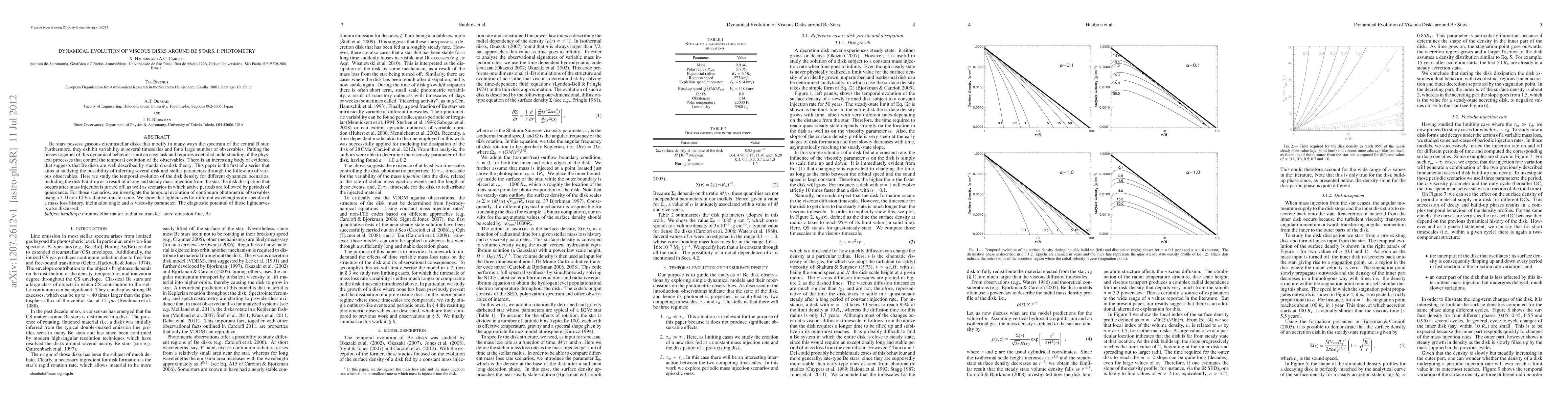 This research investigates the dynamical evolution of viscous disks around Be stars using a 3-D non-LTE radiative transfer code. It finds that lightcurves for various wavelengths reveal the mass loss history, inclination angle, and alpha viscosity parameter of the disk, aiding in inferring disk and stellar parameters.