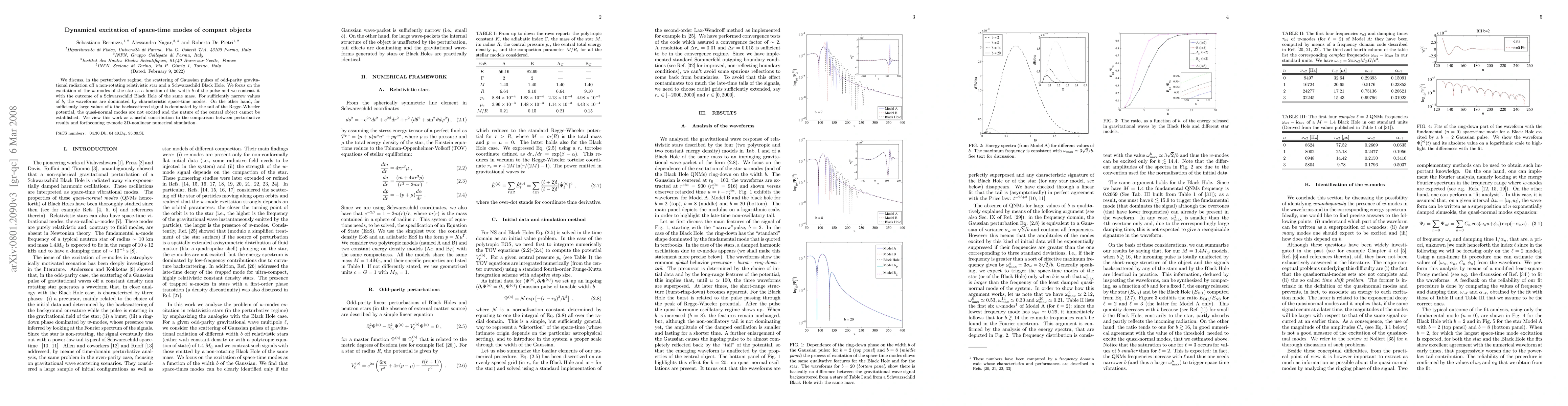 We discuss, in the perturbative regime, the scattering of Gaussian pulses of odd-parity gravitational radiation off a non-rotating relativistic star and a Schwarzschild Black Hole. We focus on the excitation of the $w$-modes of the star as a function of the width $b$ of the pulse and we contrast it with the outcome of a Schwarzschild Black Hole of the same mass. For sufficiently narrow values of $b$, the waveforms are dominated by characteristic space-time modes. On the other hand, for sufficiently large values of $b$ the backscattered signal is dominated by the tail of the Regge-Wheeler potential, the quasi-normal modes are not excited and the nature of the central object cannot be established. We view this work as a useful contribution to the comparison between perturbative results and forthcoming $w$-mode 3D-nonlinear numerical simulation.