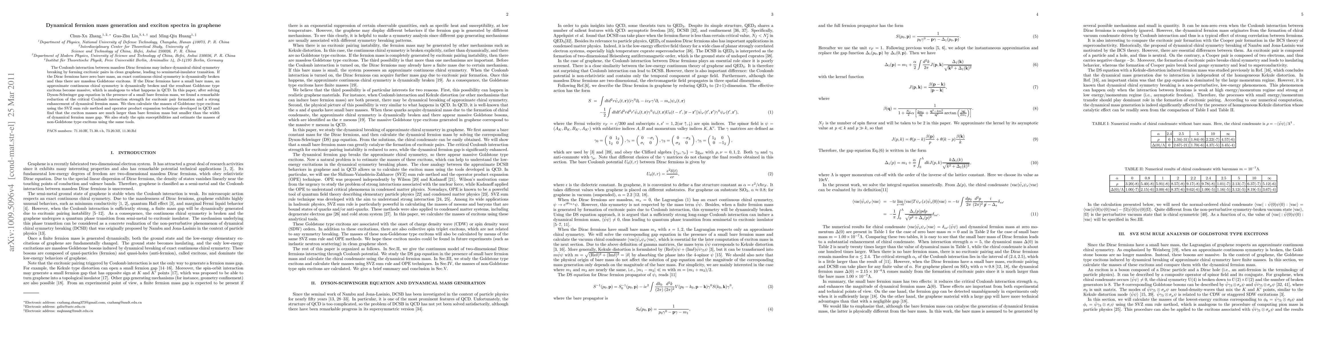 Researchers found that a small bare mass in graphene's Dirac fermions leads to a semimetal-insulator transition through excitonic pairs, with masses of Goldstone-type excitons being larger than the bare fermion mass but smaller than the dynamical fermion mass gap.
