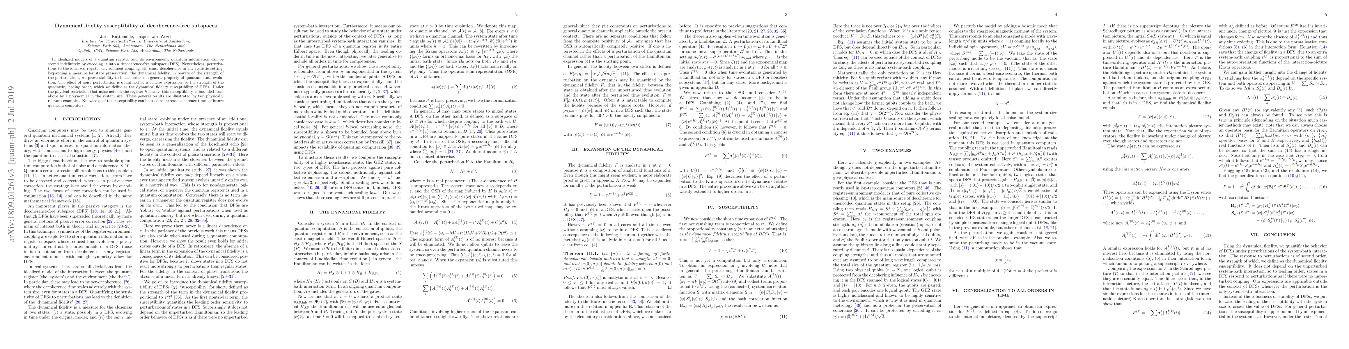 In idealized models of a quantum register and its environment, quantum information can be stored indefinitely by encoding it into a decoherence-free subspace (DFS). Nevertheless, perturbations to the idealized register-environment coupling will cause decoherence in any realistic setting. Expanding a measure for state preservation, the dynamical fidelity, in powers of the strength of the perturbations, we prove stability to linear order is a generic property of quantum state evolution. The effect of noise perturbation is quantified by a concise expression for the strength of the quadratic, leading order, which we define as the dynamical fidelity susceptibility of DFSs. Under the physical restriction that noise acts on the register $k$-locally, this susceptibility is bounded from above by a polynomial in the system size. These general results are illustrated by two physically relevant examples. Knowledge of the susceptibility can be used to increase coherence times of future quantum computers.