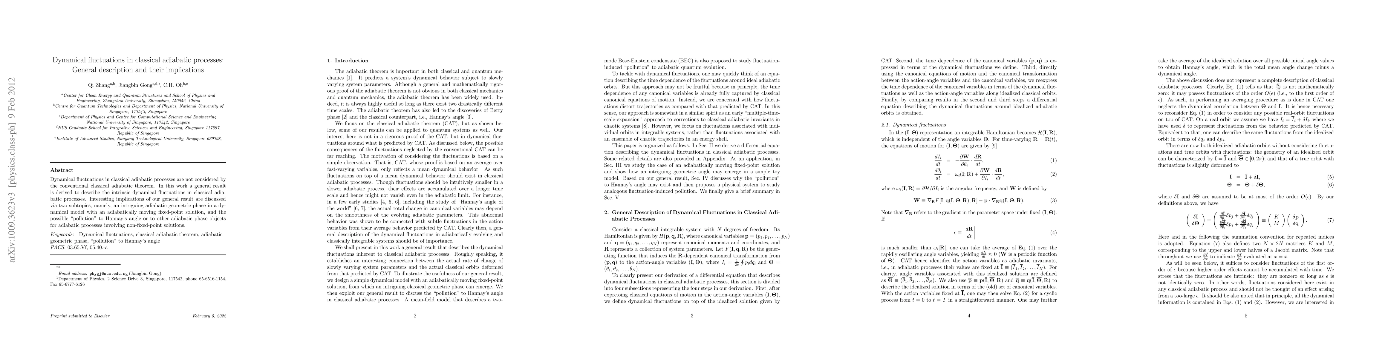 This paper derives a general result to describe intrinsic dynamical fluctuations in classical adiabatic processes, beyond the conventional adiabatic theorem. It discusses implications including an adiabatic geometric phase in dynamical models and potential "pollution" to Hannay's angle in processes involving non-fixed-point solutions.