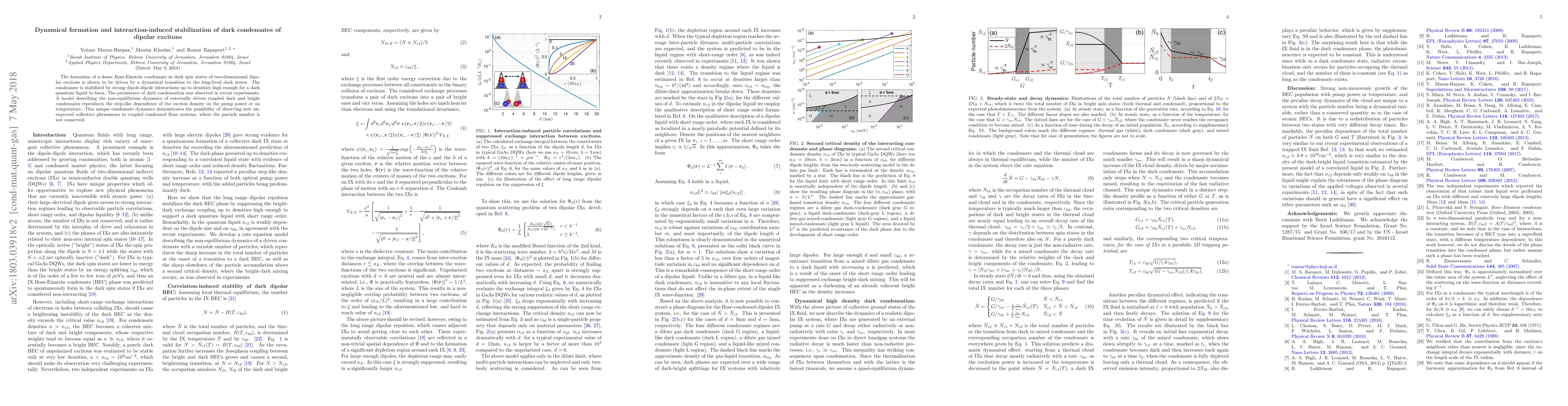 The formation of a dense Bose-Einstein condensate in dark spin states of two-dimensional dipolar excitons is shown to be driven by a dynamical transition to the long-lived dark states. The condensate is stabilized by strong dipole-dipole interactions up to densities high enough for a dark quantum liquid to form. The persistence of dark condensation was observed in recent experiments. A model describing the non-equilibrium dynamics of externally driven coupled dark and bright condensates reproduces the step-like dependence of the exciton density on the pump power or on temperature. This unique condensate dynamics demonstrates the possibility of observing new unexpected collective phenomena in coupled condensed Bose systems, where the particle number is not conserved.
