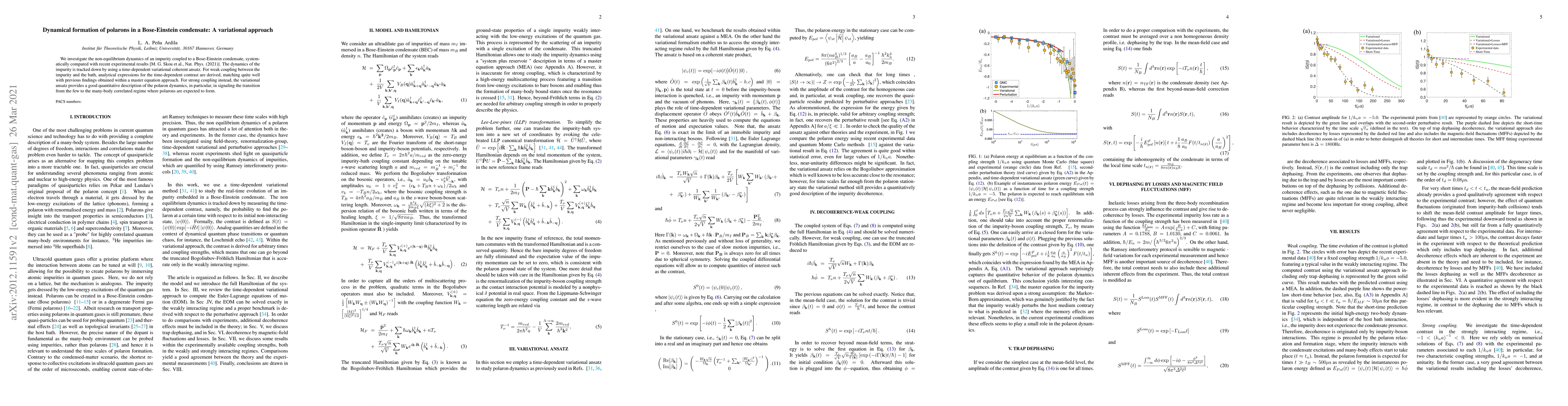 This paper investigates the dynamical formation of polarons in a Bose-Einstein condensate using a time-dependent variational coherent ansatz. For weak impurity-bath coupling, analytical expressions match previous master equation results, while for strong coupling, the variational approach effectively describes the transition to polaron formation.