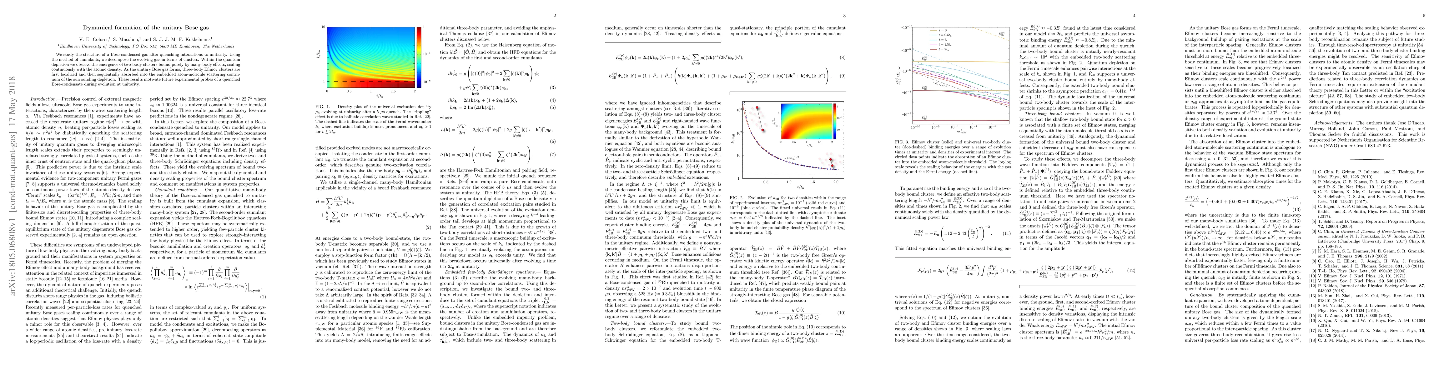 We study the structure of a Bose-condensed gas after quenching interactions to unitarity. Using the method of cumulants, we decompose the evolving gas in terms of clusters. Within the quantum depletion we observe the emergence of two-body clusters bound purely by many-body effects, scaling continuously with the atomic density. As the unitary Bose gas forms, three-body Efimov clusters are first localized and then sequentially absorbed into the embedded atom-molecule scattering continuum of the surrounding depletion. These results motivate future experimental probes of a quenched Bose-condensate during evolution at unitarity.