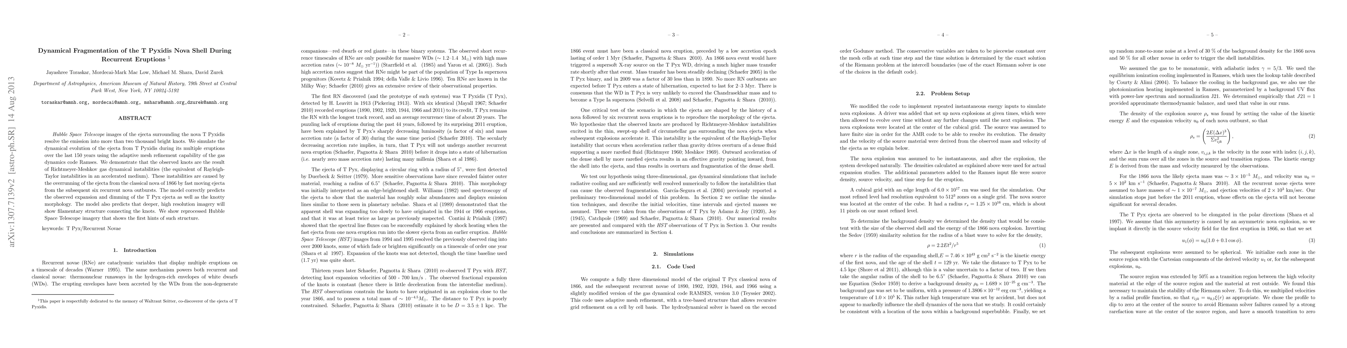 Scientists used computer simulations to understand how a nova shell fragmented into thousands of knots over 150 years. They found that the knots were caused by gas dynamical instabilities triggered by fast-moving ejecta from subsequent eruptions.