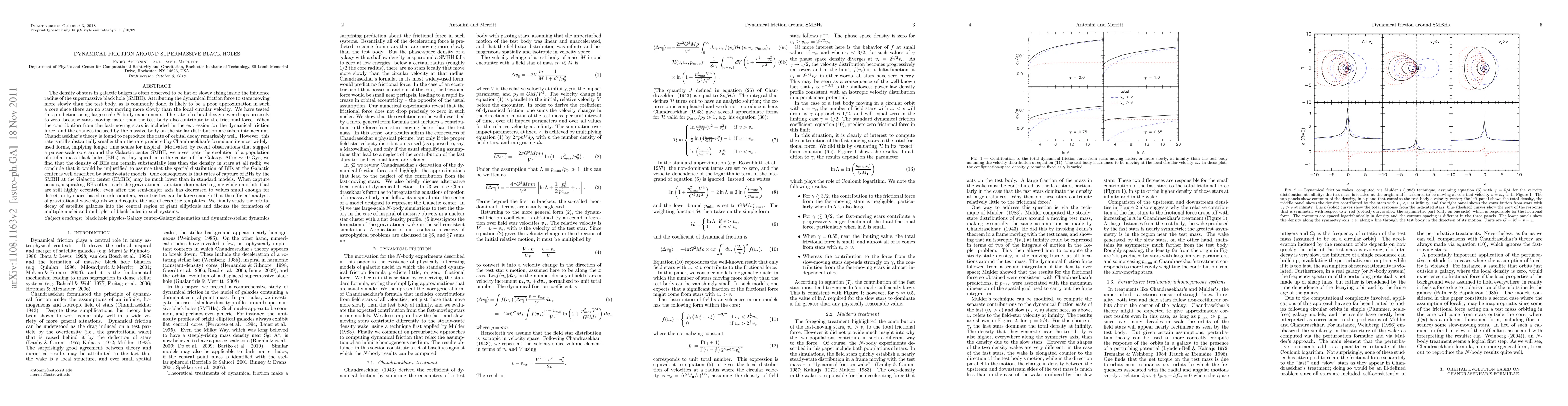 This paper explores the dynamical friction around supermassive black holes (SMBHs) and finds that Chandrasekhar's theory, when adjusted for fast-moving stars, accurately predicts the rate of orbital decay. It concludes that the spatial distribution of stellar-mass black holes around the Galactic center is not steady-state, leading to lower rates of black hole capture by the SMBH.