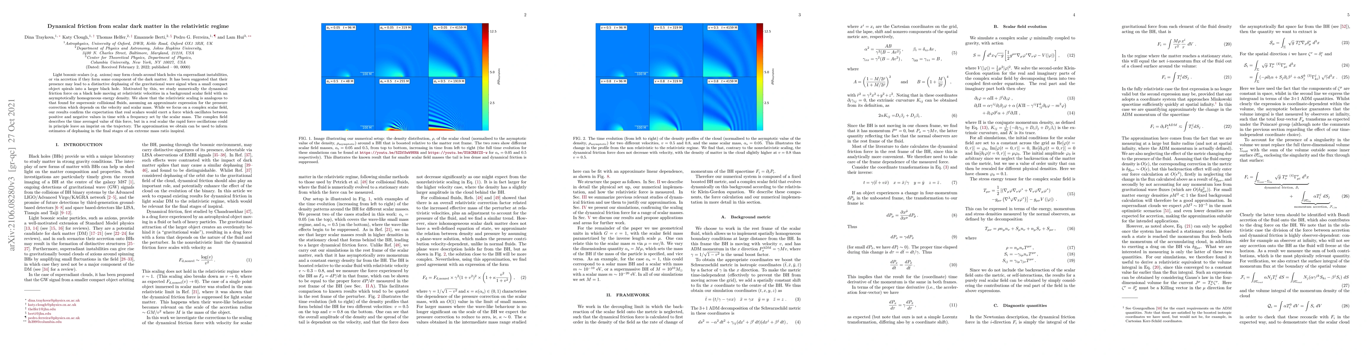 Light bosonic scalars (e.g. axions) may form clouds around black holes via superradiant instabilities, or via accretion if they form some component of the dark matter. It has been suggested that their presence may lead to a distinctive dephasing of the gravitational wave signal when a small compact object spirals into a larger black hole. Motivated by this, we study numerically the dynamical friction force on a black hole moving at relativistic velocities in a background scalar field with an asymptotically homogeneous energy density. We show that the relativistic scaling is analogous to that found for supersonic collisional fluids, assuming an approximate expression for the pressure correction which depends on the velocity and scalar mass. While we focus on a complex scalar field, our results confirm the expectation that real scalars would exert a force which oscillates between positive and negative values in time with a frequency set by the scalar mass. The complex field describes the time averaged value of this force, but in a real scalar the rapid force oscillations could in principle leave an imprint on the trajectory. The approximation we obtain can be used to inform estimates of dephasing in the final stages of an extreme mass ratio inspiral.