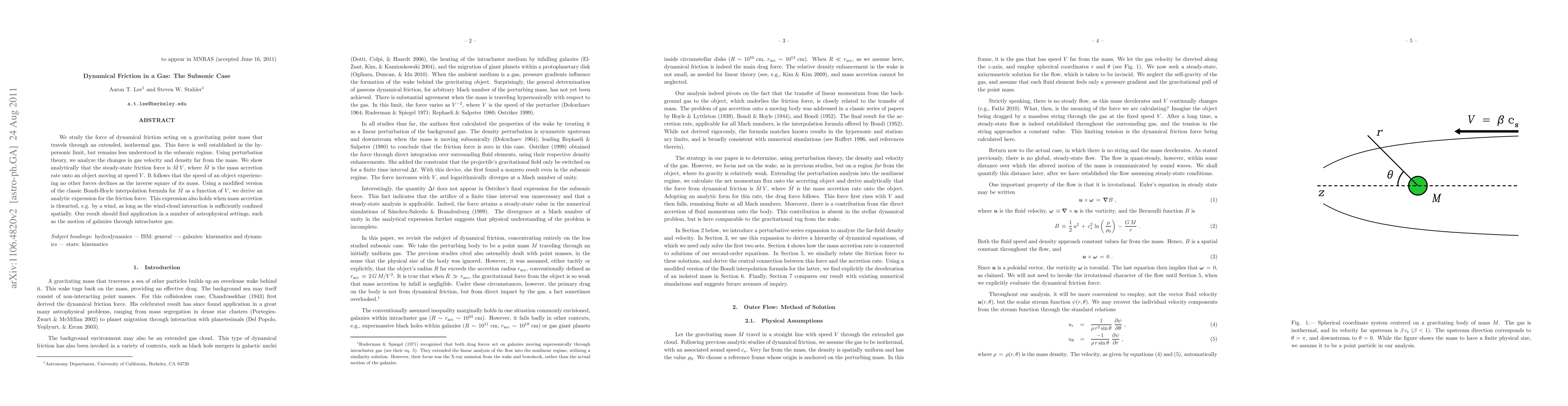 This paper investigates the dynamical friction force on a gravitating point mass moving through an isothermal gas in the subsonic regime, deriving an analytical expression for the steady-state friction force as Mdot*V, where Mdot is the mass accretion rate. The findings have implications for astrophysical phenomena like the motion of galaxies through intracluster gas.