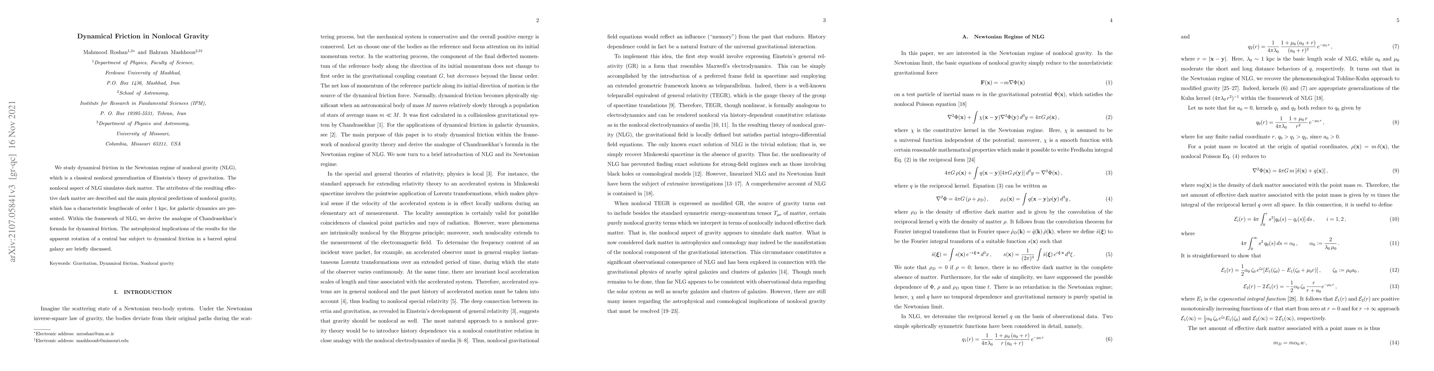This paper investigates dynamical friction within the Newtonian regime of nonlocal gravity (NLG), a classical extension of Einstein's theory that incorporates a nonlocal aspect simulating dark matter. It derives an analogue of Chandrasekhar's formula for dynamical friction in NLG and discusses its implications for galactic dynamics, particularly the rotation of a central bar in barred spiral galaxies.