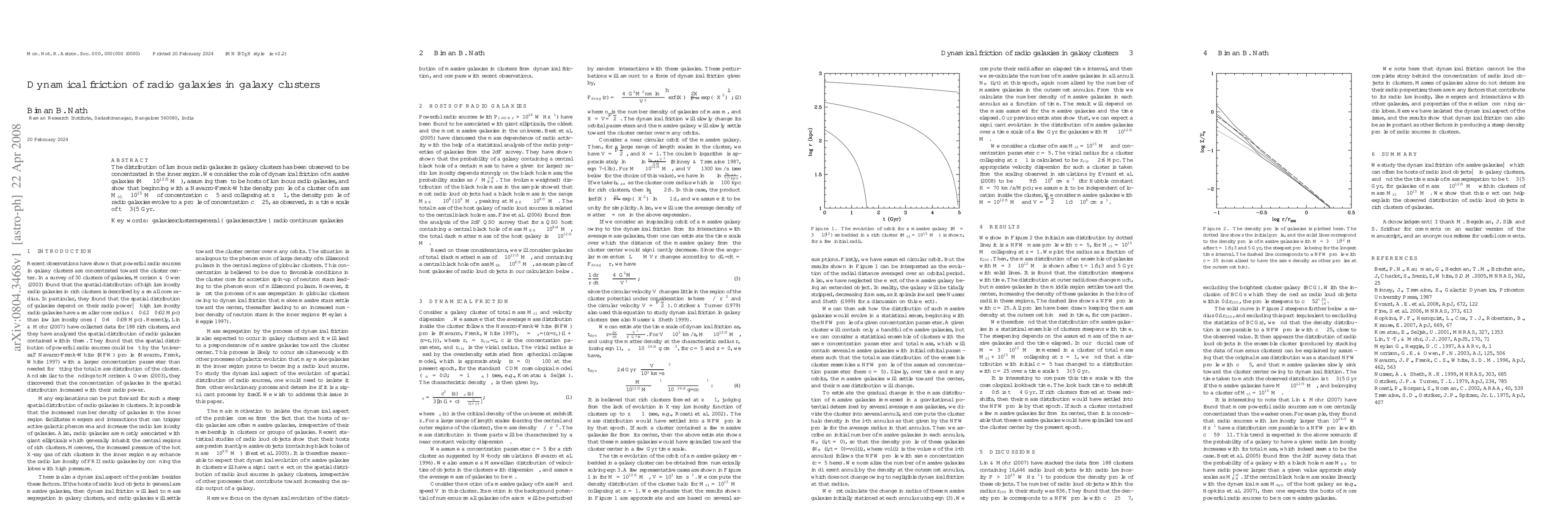 This paper investigates how dynamical friction affects the distribution of luminous radio galaxies within galaxy clusters, demonstrating that these galaxies, with masses around $10^{12.5}$ M$_{\odot}$, migrate inwards, resulting in a concentration factor of $c \sim 25$ over $3-5$ Gyr, consistent with observations.