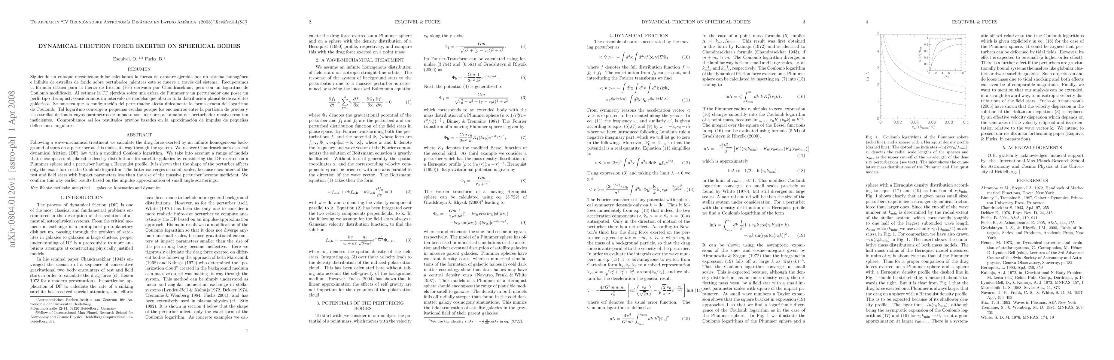 Following a wave-mechanical treatment we calculate the drag force exerted by an infinite homogeneous background of stars on a perturber as this makes its way through the system. We recover Chandrasekhar's classical dynamical friction (DF) law with a modified Coulomb logarithm. We take into account a range of models that encompasses all plausible density distributions for satellite galaxies by considering the DF exerted on a Plummer sphere and a perturber having a Hernquist profile. It is shown that the shape of the perturber affects only the exact form of the Coulomb logarithm. The latter converges on small scales, because encounters of the test and field stars with impact parameters less than the size of the massive perturber become inefficient. We confirm this way earlier results based on the impulse approximation of small angle scatterings.