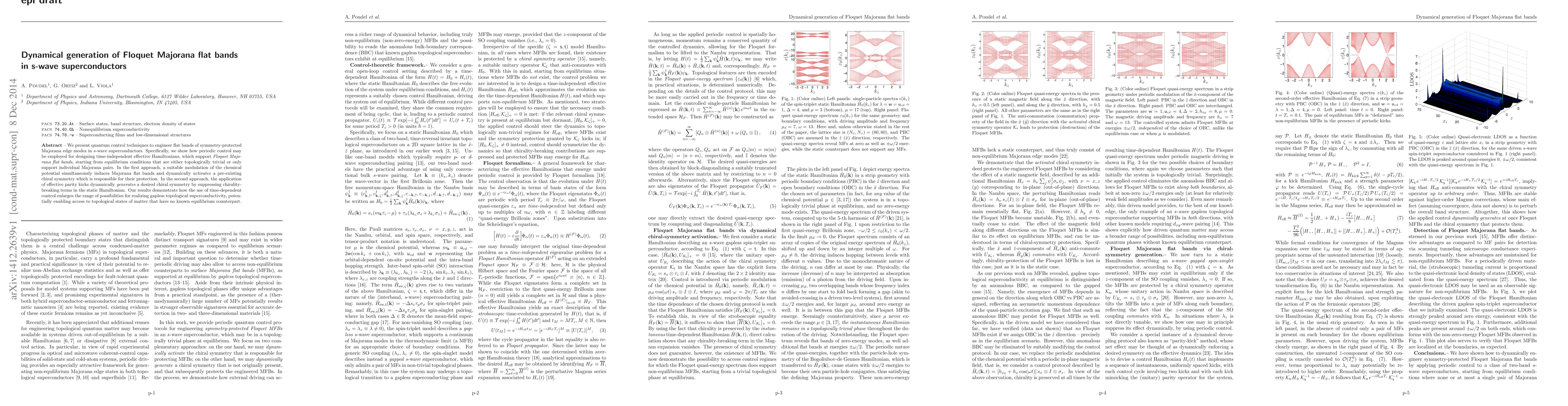 This paper explores quantum control techniques to create symmetry-protected Majorana flat bands in s-wave superconductors using periodic modulation. It demonstrates two methods: modulating the chemical potential to induce and activate chiral symmetry, and applying parity kicks to generate chiral symmetry dynamically, thus expanding the potential for realizing gapless topological superconductivity.