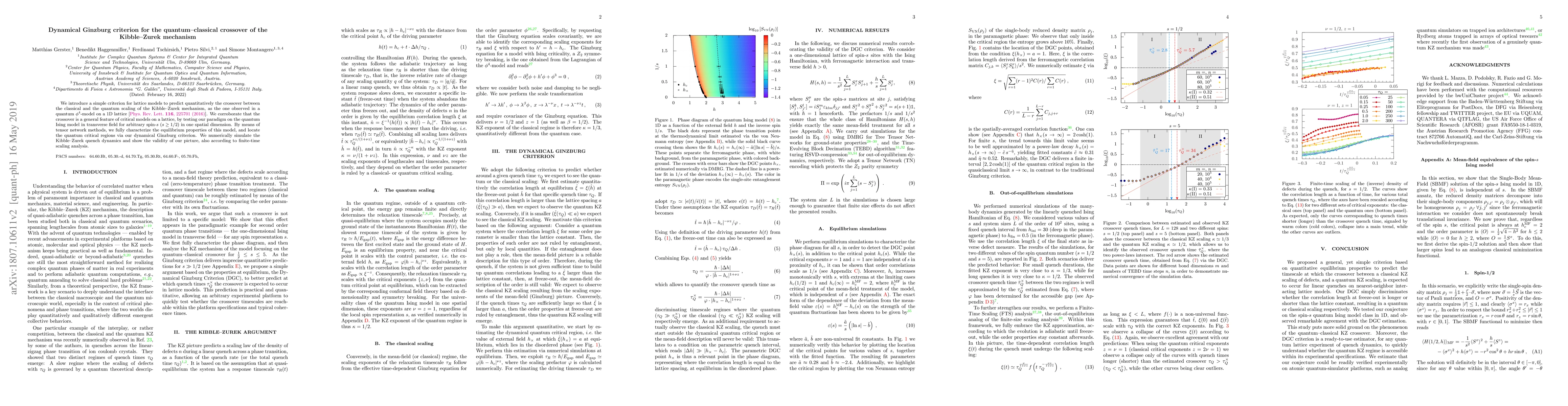 This paper proposes a dynamical Ginzburg criterion for predicting the crossover between classical and quantum scaling in the Kibble-Zurek mechanism for lattice models. It validates the criterion through tensor network methods and numerical simulations on the quantum Ising model, demonstrating its applicability across different critical models.