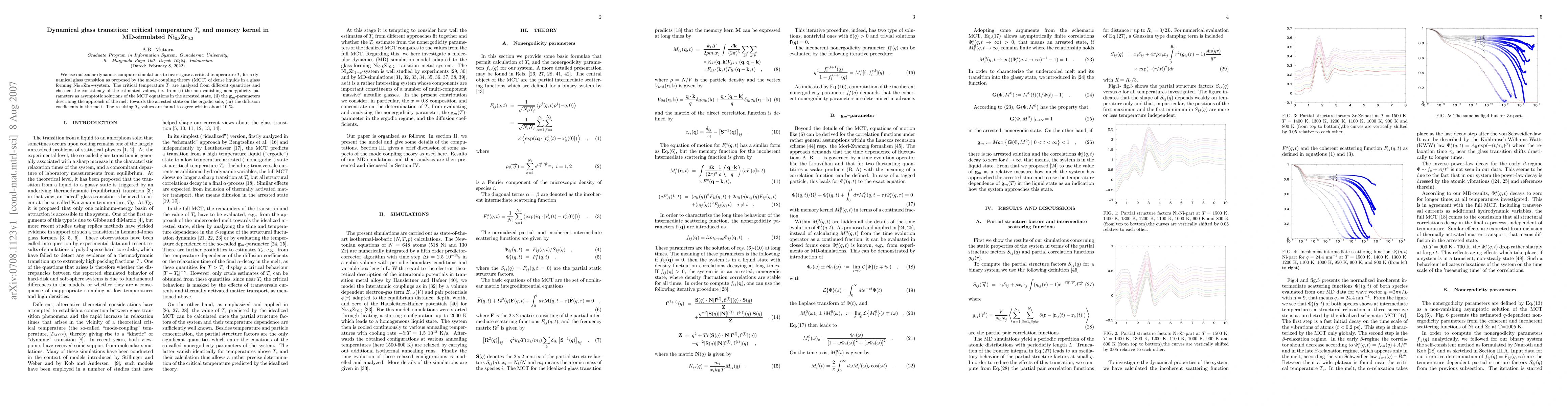 This study uses molecular dynamics simulations to determine the critical temperature T_c for a dynamical glass transition in Ni_{0.8}Zr_{0.2}, analyzing it through various metrics including nonergodicity parameters, g_m parameters, and diffusion coefficients. The T_c values derived from these methods are consistent within 10%.
