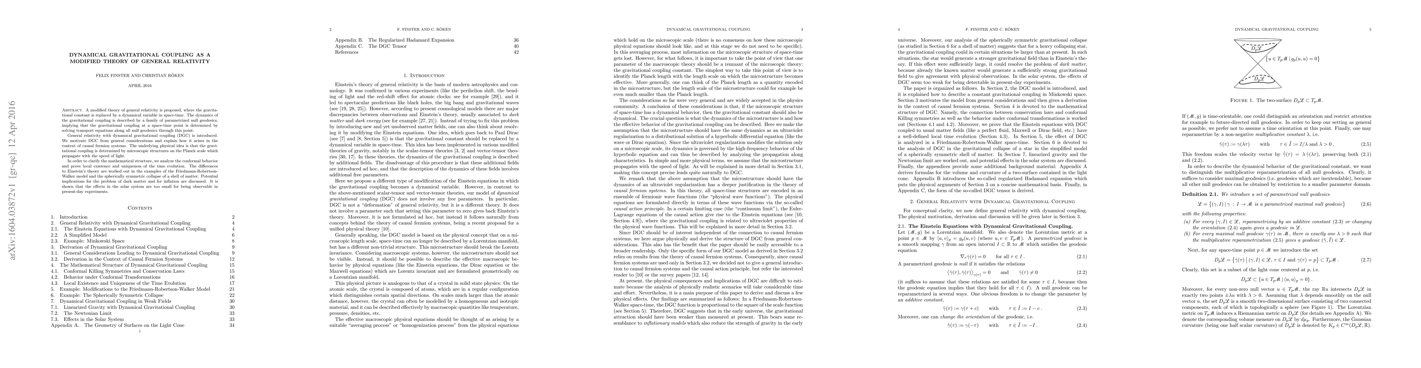 This paper proposes a modified theory of general relativity where the gravitational constant is a dynamical variable, determined by transport equations along null geodesics. The theory, termed dynamical gravitational coupling (DGC), suggests that gravitational coupling is influenced by microscopic structures on the Planck scale, potentially impacting dark matter and inflation, though effects in the solar system are too small for current detection.