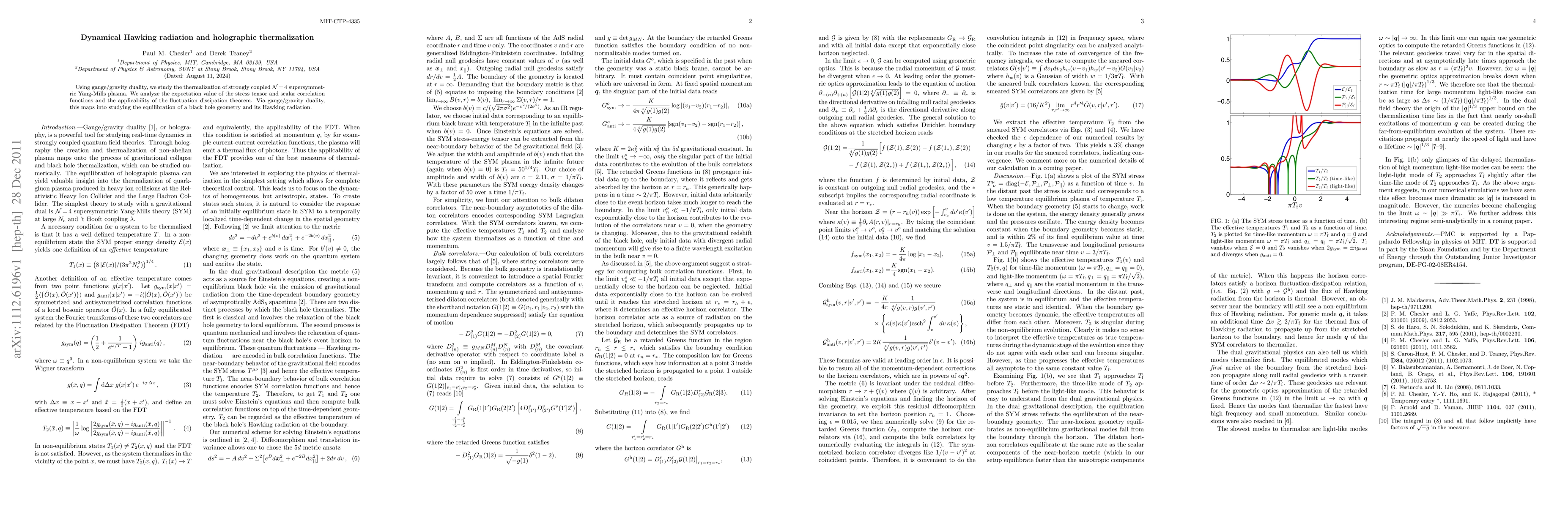 Using gauge/gravity duality, we study the thermalization of strongly coupled N = 4 supersymmetric Yang-Mills plasma. We analyze the expectation value of the stress tensor and scalar correlation functions and the applicability of the fluctuation dissipation theorem. Via gauge/gravity duality, this maps into studying the equilibration of a black hole geometry and its Hawking radiation.