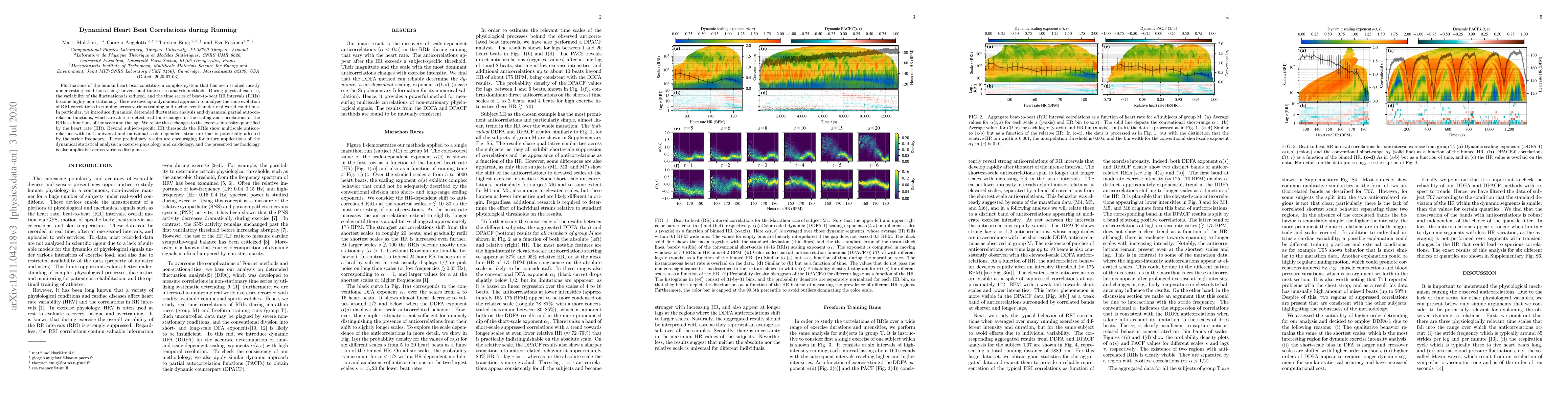 Fluctuations of the human heart beat constitute a complex system that has been studied mostly under resting conditions using conventional time series analysis methods. During physical exercise, the variability of the fluctuations is reduced, and the time series of beat-to-beat RR intervals (RRIs) become highly non-stationary. Here we develop a dynamical approach to analyze the time evolution of RRI correlations in running across various training and racing events under real-world conditions. In particular, we introduce dynamical detrended fluctuation analysis and dynamical partial autocorrelation functions, which are able to detect real-time changes in the scaling and correlations of the RRIs as functions of the scale and the lag. We relate these changes to the exercise intensity quantified by the heart rate (HR). Beyond subject-specific HR thresholds the RRIs show multiscale anticorrelations with both universal and individual scale-dependent structure that is potentially affected by the stride frequency. These preliminary results are encouraging for future applications of the dynamical statistical analysis in exercise physiology and cardiology, and the presented methodology is also applicable across various disciplines.