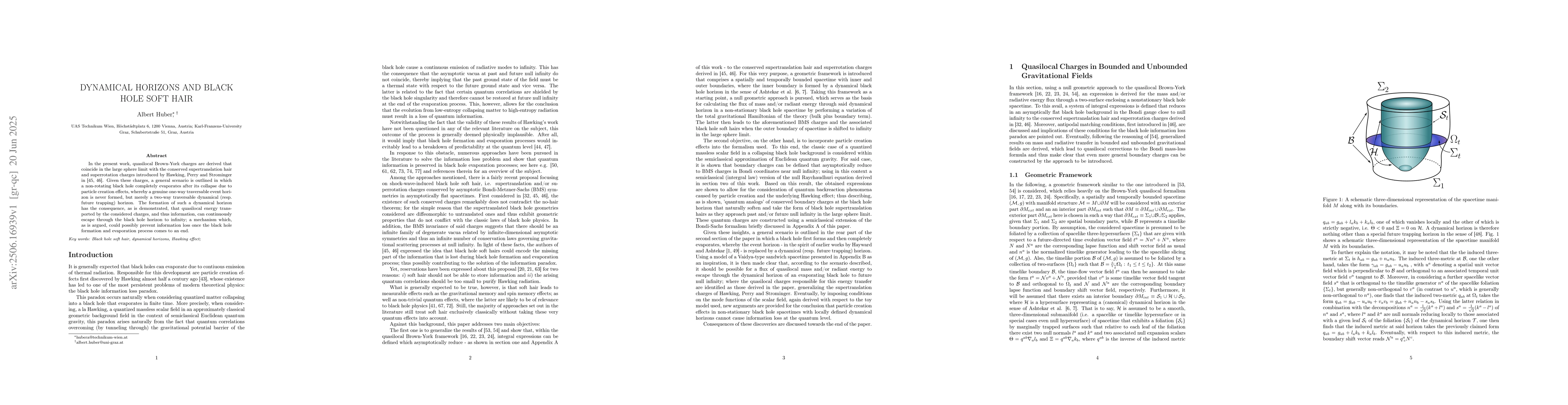 In the present work, quasilocal Brown-York charges are derived that coincide in the large sphere limit with the conserved supertranslation hair and superrotation charges introduced by Hawking, Perry and Strominger in [45, 46]. Given these charges, a general scenario is outlined in which a non-rotating black hole completely evaporates after its collapse due to particle creation effects, whereby a genuine one-way traversable event horizon is never formed, but merely a two-way traversable dynamical (resp. future trapping) horizon. The formation of such a dynamical horizon has the consequence, as is demonstrated, that quasilocal energy transported by the considered charges, and thus information, can continuously escape through the black hole horizon to infinity; a mechanism which, as is argued, could possibly prevent information loss once the black hole formation and evaporation process comes to an end.