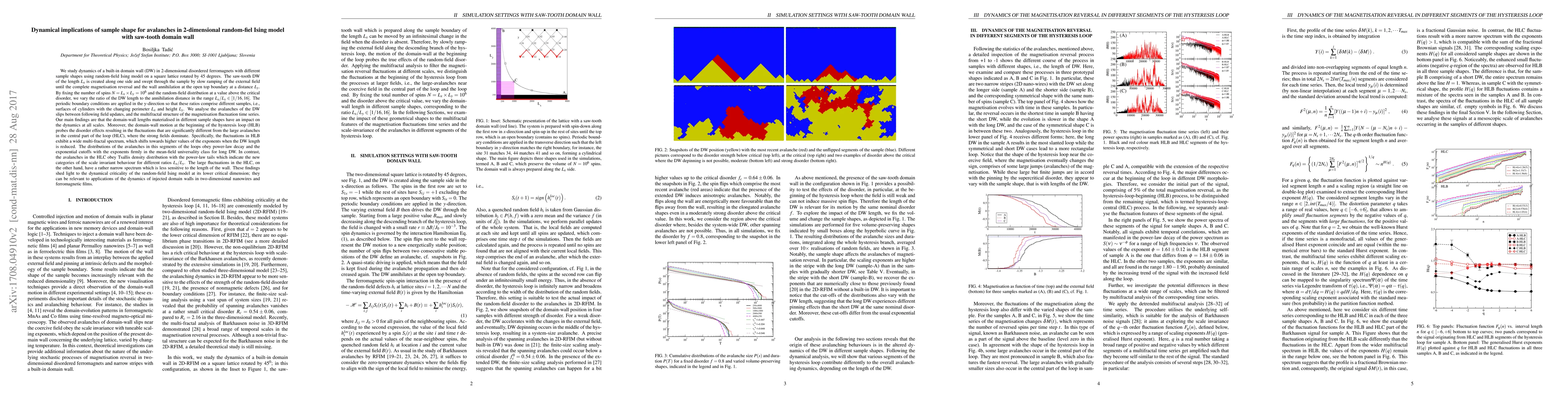 We study dynamics of an injected domain wall (DW) in 2-dimensional disordered ferromagnets with different sample shapes using random-field Ising model on a square lattice rotated by 45 degrees. The saw-tooth DW of the length $L_x$ is created along one side and swept through the sample by slow ramping of the external field until the complete magnetisation reversal and the wall annihilation at the open top boundary at a distance $L_y$. By fixing the number of spins $N=L_x\times L_y=10^6$ and the random-field distribution above the critical disorder, we vary the ratio $L_x/L_y\in[1/16,16]$. The periodic boundary conditions are applied in the y-direction so that these ratios comprise different samples, i.e., surfaces of cylinders with the changing perimeter $L_x$ and height $L_y$. We analyse the avalanches of the DW slips between following field updates, and the multifractal structure of the magnetisation fluctuation time series. Our findings are that the domain-wall lengths materialised in different sample shapes have an impact on the dynamics at all scales.