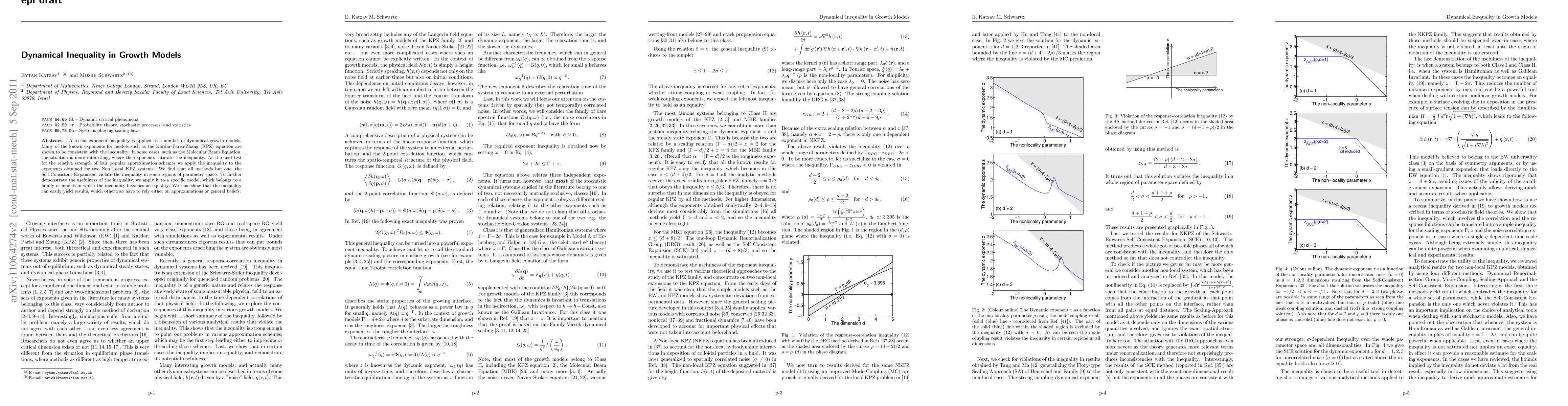 This paper applies a recent exponent inequality to various dynamical growth models, demonstrating consistency with known exponents in models like the KPZ equation. It highlights that the inequality can reveal limitations in popular approximation schemes, particularly showing that all but one method violates the inequality in certain parameter regions.