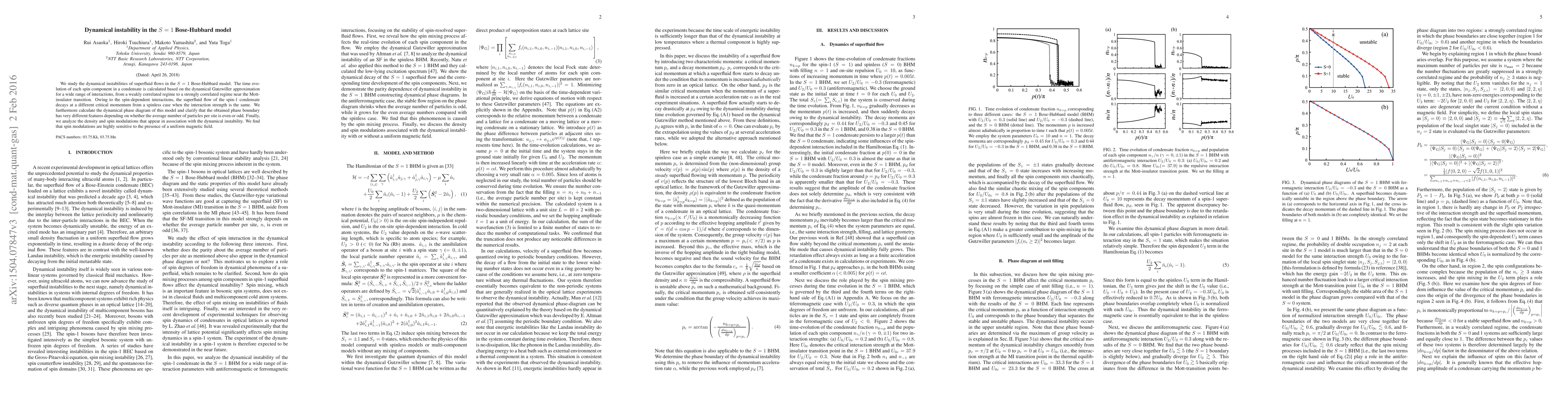 We study the dynamical instabilities of superfluid flows in the S=1 Bose-Hubbard model. The time evolution of each spin component in a condensate is calculated based on the dynamical Gutzwiller approximation for a wide range of interactions, from a weakly correlated regime to a strongly correlated regime near the Mott-insulator transition. Owing to the spin-dependent interactions, the superfluid flow of the spin-1 condensate decays at a different critical momentum from a spinless case when the interaction strength is the same. We furthermore calculate the dynamical phase diagram of this model and clarify that the obtained phase boundary has very different features depending on whether the average number of particles per site is even or odd. Finally, we analyze the density and spin modulations that appear in association with the dynamical instability. We find that spin modulations are highly sensitive to the presence of a uniform magnetic field.