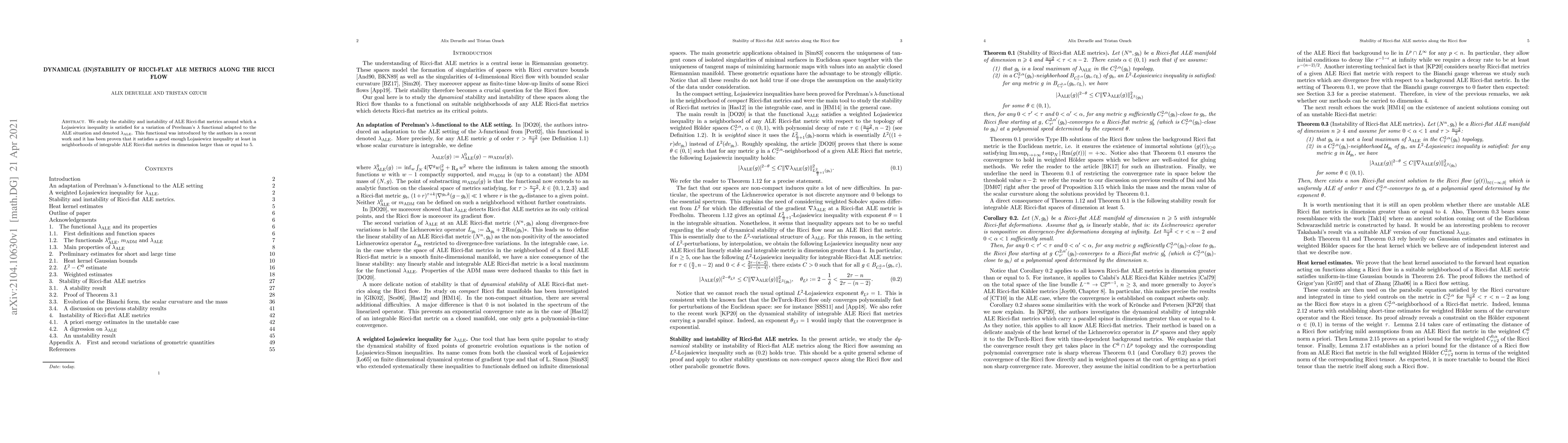 This paper examines the dynamical stability and instability of ALE Ricci-flat metrics using a modified $\lambda_{\operatorname{ALE}}$ functional that satisfies a Lojasiewicz inequality, revealing insights into the behavior of these metrics under Ricci flow in dimensions ≥ 5.