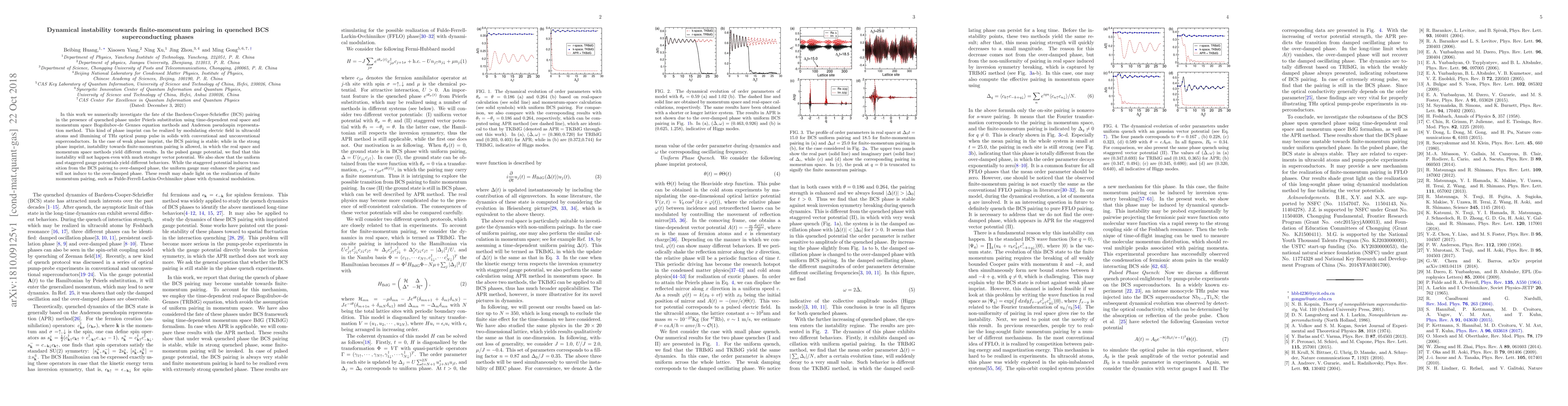 This paper investigates the dynamical instability of BCS pairing under quenched phase conditions using various numerical methods, revealing that strong phase imprints lead to finite-momentum pairing instability. The study finds different outcomes depending on the type of gauge potential applied, with staggered potentials inducing transitions to over-damped phases, while uniform potentials may enhance pairing.
