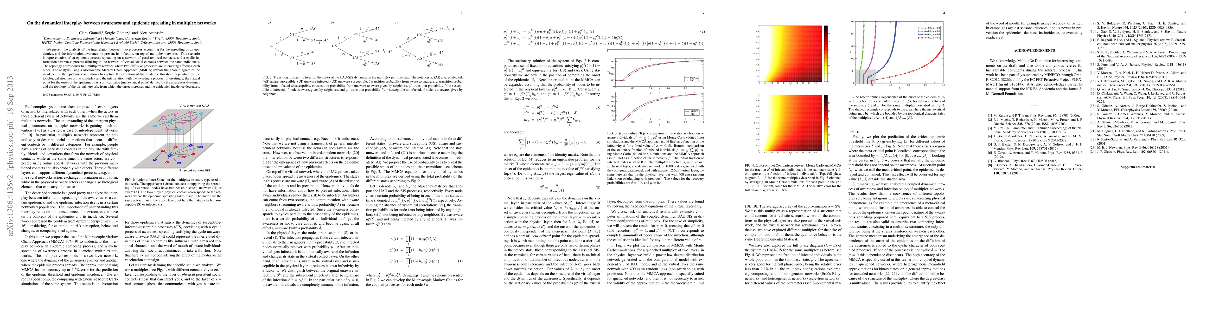 We present the analysis of the interrelation between two processes accounting for the spreading of an epidemics, and the information awareness to prevent its infection, on top of multiplex networks. This scenario is representative of an epidemic process spreading on a network of persistent real contacts, and a cyclic information awareness process diffusing in the network of virtual social contacts between the same individuals. The topology corresponds to a multiplex network where two diffusive processes are interacting affecting each other. The analysis using a Microscopic Markov Chain Approach (MMCA) reveals the phase diagram of the incidence of the epidemics and allows to capture the evolution of the epidemic threshold depending on the topological structure of the multiplex and the interrelation with the awareness process. Interestingly, the critical point for the onset of the epidemics has a critical value (meta-critical point) defined by the awareness dynamics and the topology of the virtual network, from which the onset increases and the epidemics incidence decreases.