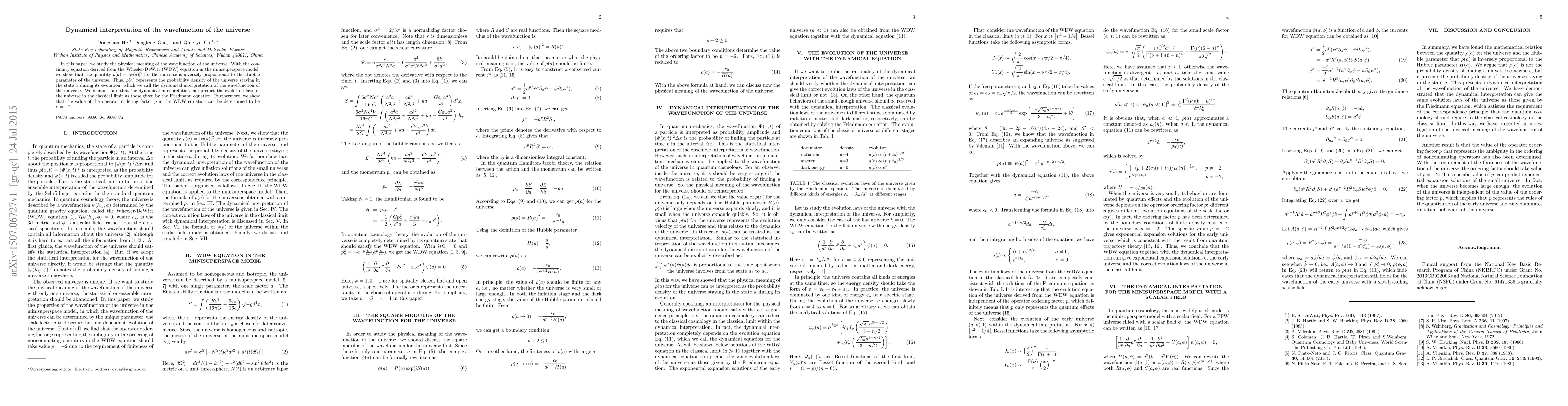 This paper interprets the wavefunction of the universe, showing that $|\psi(a)|^2$ is inversely proportional to the Hubble parameter, thus representing the probability density of the universe in state $a$. The dynamical interpretation predicts classical cosmological evolution as given by the Friedmann equation and determines the operator ordering factor in the Wheeler-DeWitt equation to be $p=-2$.