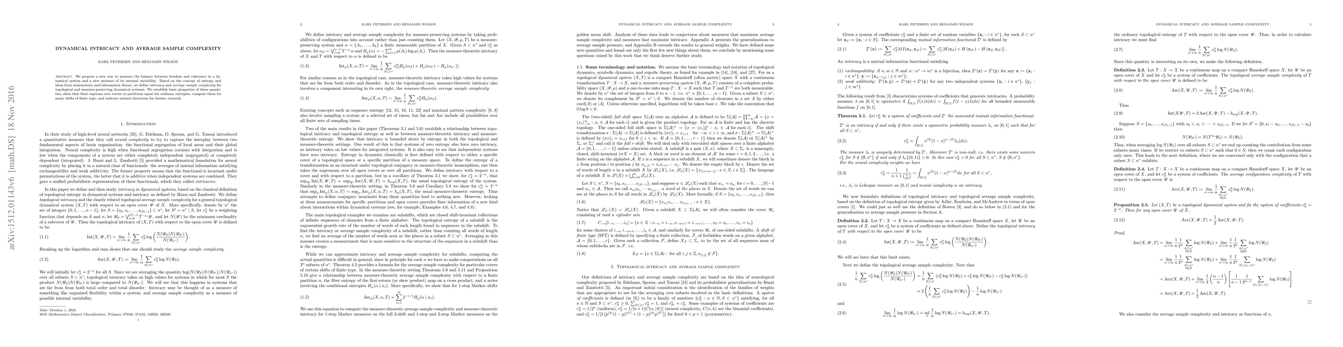 We propose a new way to measure the balance between freedom and coherence in a dynamical system and a new measure of its internal variability. Based on the concept of entropy and ideas from neuroscience and information theory, we define \emph{intricacy} and \emph{average sample complexity} for topological and measure-preserving dynamical systems. We establish basic properties of these quantities, show that their suprema over covers or partitions equal the ordinary entropies, compute them for many shifts of finite type, and indicate natural directions for further research.