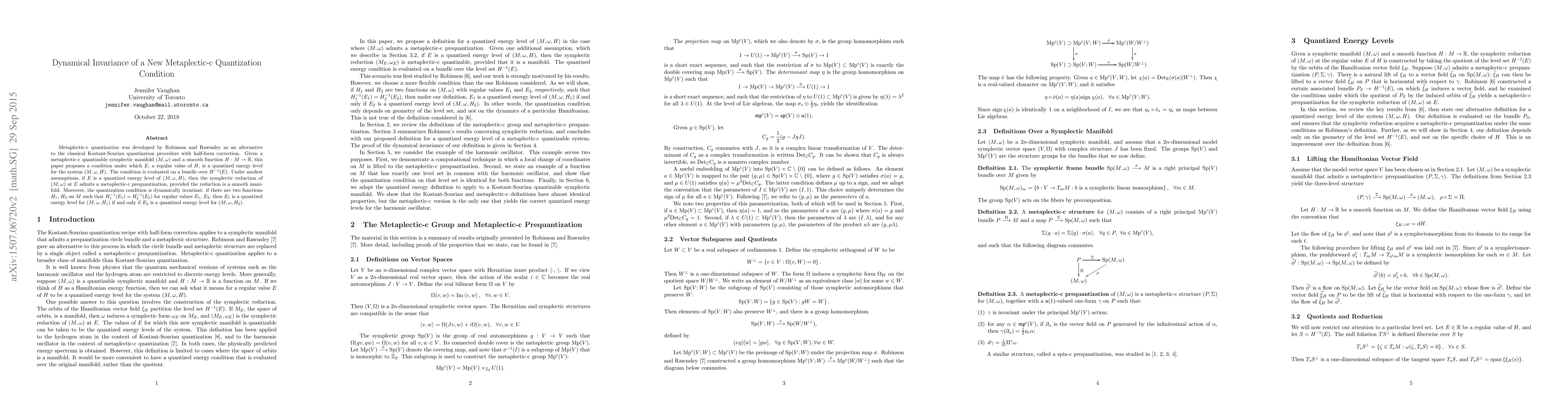 Metaplectic-c quantization was developed by Robinson and Rawnsley as an alternative to the classical Kostant-Souriau quantization procedure with half-form correction. Given a metaplectic-c quantizable symplectic manifold M and a smooth function H on M, this paper proposes a condition under which E, a regular value of H, is a quantized energy level for the system. The condition is evaluated on a bundle over the level set of H at E. We prove that the result depends only on the geometry of the level set, and not on the dynamics of a particular function, improving on an earlier construction by Robinson.