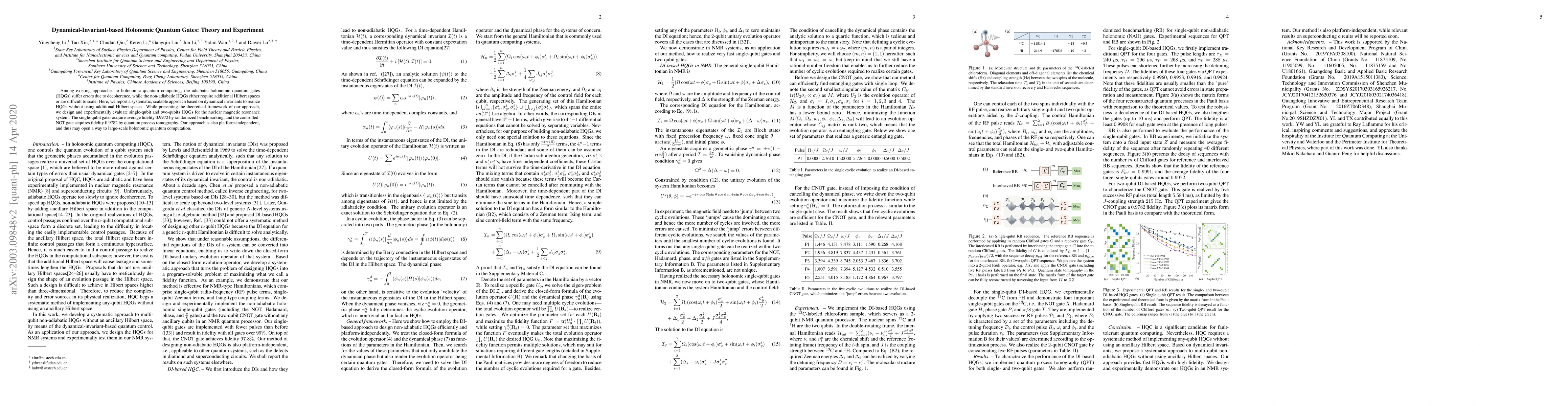 This paper presents a scalable, dynamical-invariant-based method for holonomic quantum gates that avoids decoherence errors and additional Hilbert spaces. Experimental results on NMR systems show high fidelity for single-qubit and two-qubit gates, indicating potential for large-scale quantum computation.
