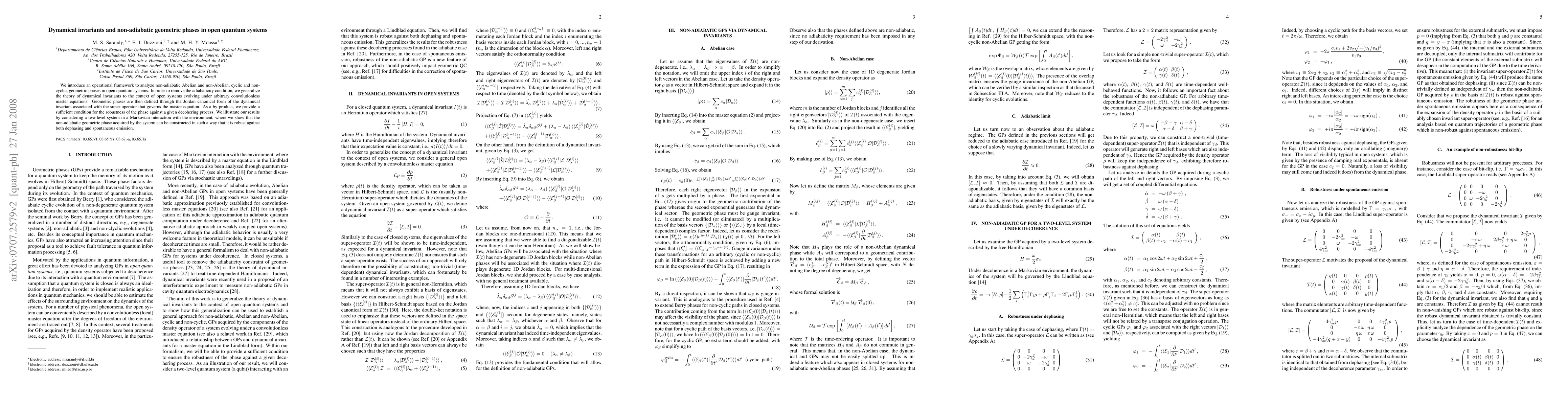 This paper presents a framework for analyzing non-adiabatic geometric phases in open quantum systems, generalizing dynamical invariants and providing robustness conditions against decoherence, demonstrated through a two-level system example.
