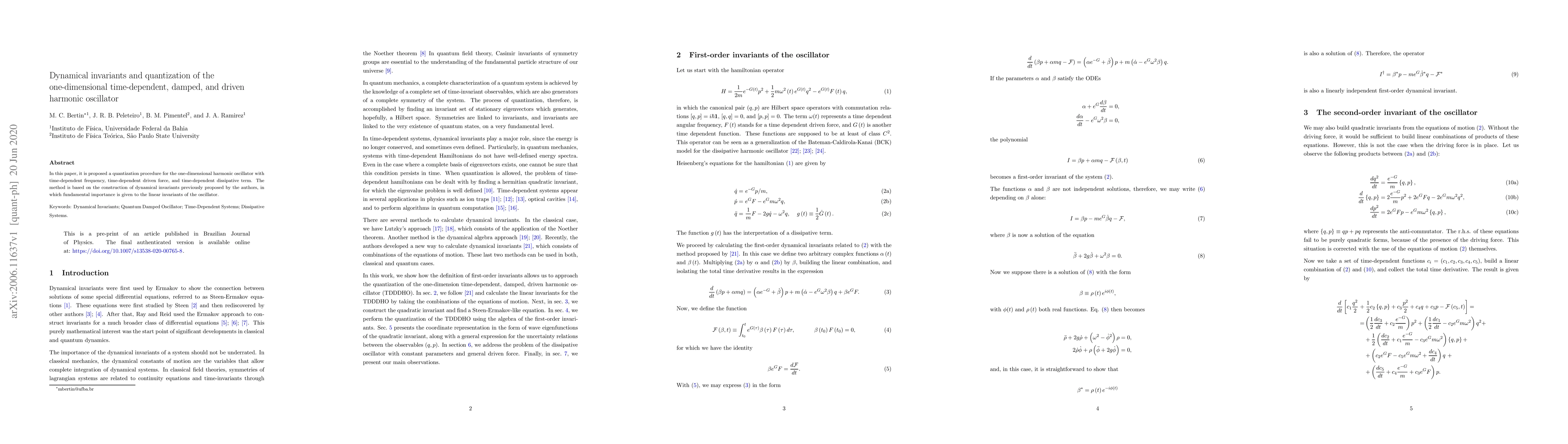 This paper proposes a novel quantization method for a one-dimensional harmonic oscillator with time-varying frequency, driven force, and damping, using previously developed dynamical invariants focusing on linear invariants. The approach aims to maintain fundamental properties during quantization.