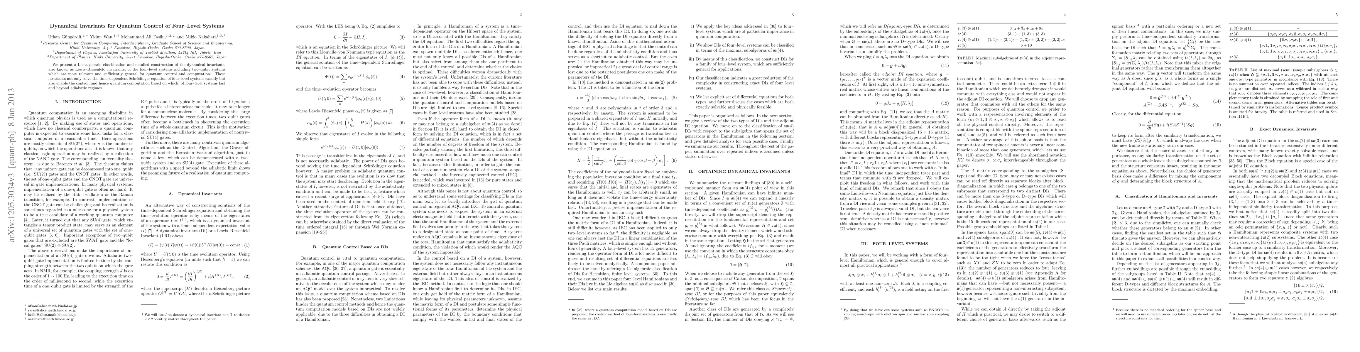The research presents a Lie-algebraic classification and construction of dynamical invariants (Lewis-Riesenfeld invariants) for four-level systems, including two-qubit systems, relevant for quantum control and computation.