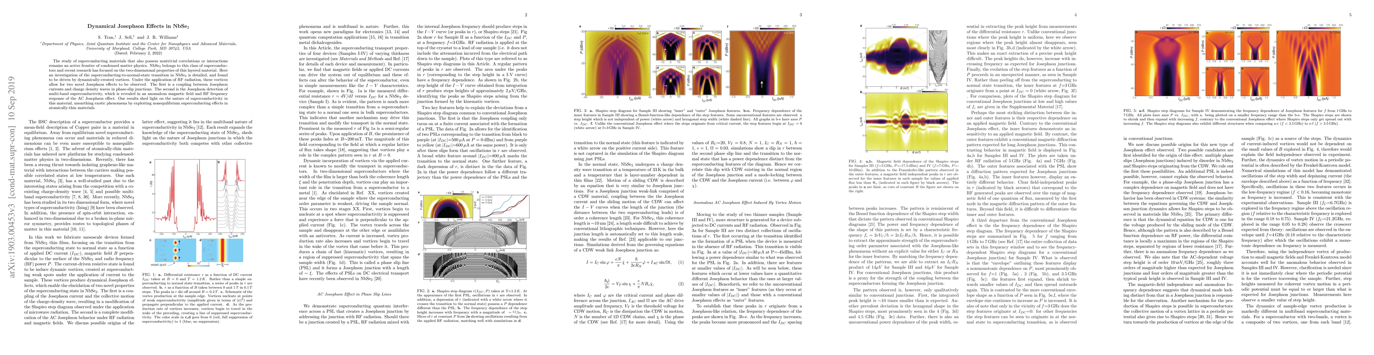 This paper investigates the superconducting-to-normal-state transition in NbSe$_2$, revealing dynamically-created vortices and two novel Josephson effects under RF radiation: coupling between Josephson currents and charge density waves, and detection of multi-band superconductivity.