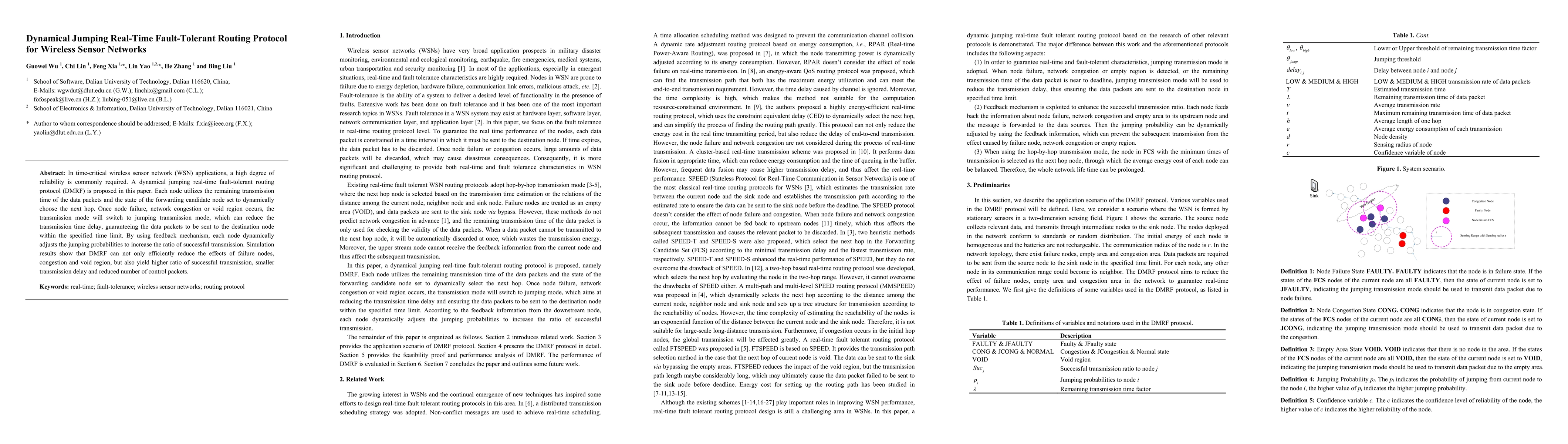 A new routing protocol called Dynamical Jumping Real-Time Fault-Tolerant Routing Protocol (DMRF) is proposed to improve reliability in wireless sensor networks. It uses feedback mechanisms to reduce transmission delay and increase successful transmission ratios when faced with node failures, congestion, or void regions.