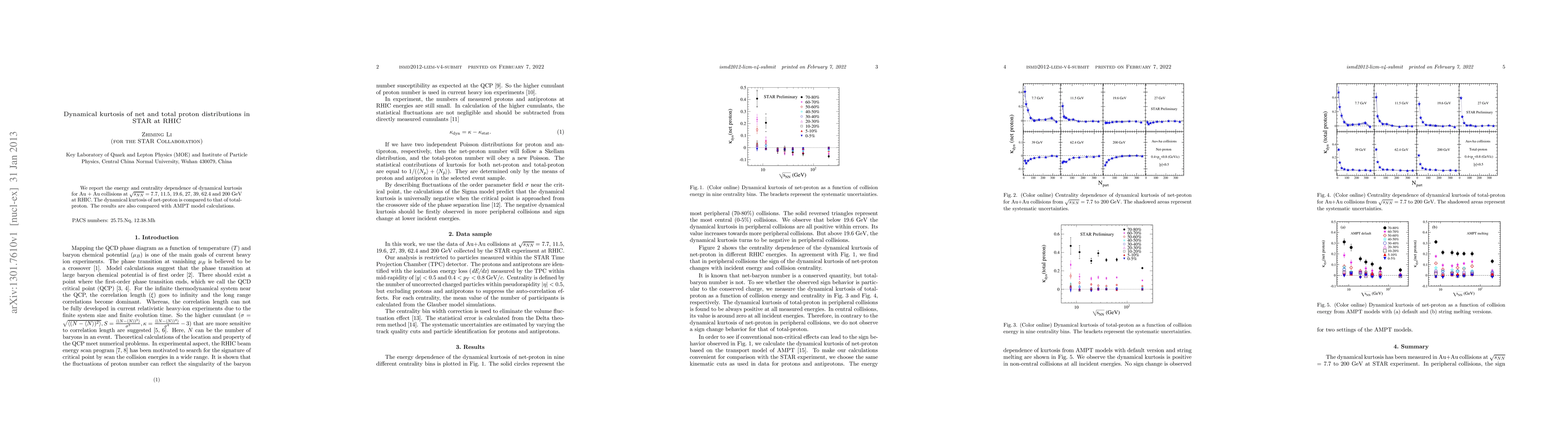 This study investigates the energy and centrality dependence of dynamical kurtosis in net and total proton distributions from Au+Au collisions at various energies at RHIC, comparing the results to AMPT model predictions. The findings highlight differences between net-proton and total-proton dynamical kurtosis across different collision energies.